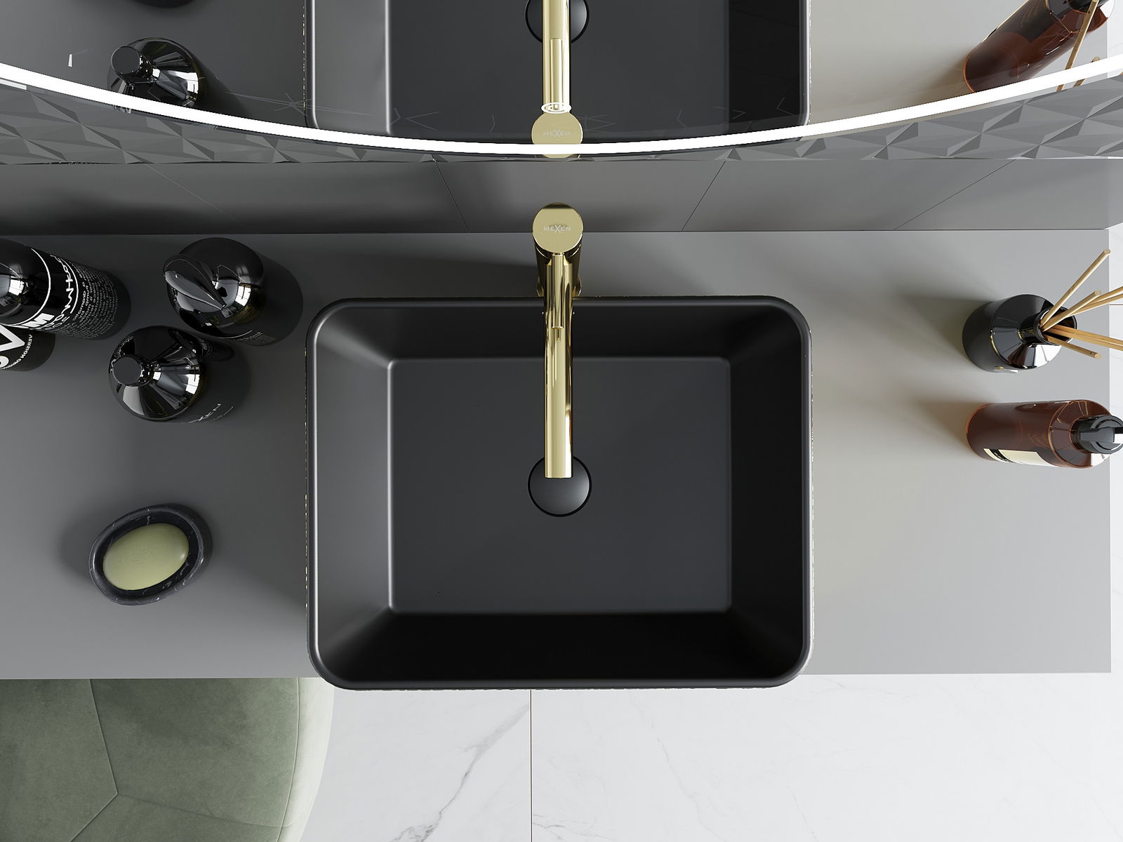 A kerámia matt felülete tökéletesen hangsúlyozza a termék színének természetét, így egyedi és kifejező felületet biztosít. A matt kerámia finom szerkezete eleganciát vezet be a fürdőszobában, esztétikai teret teremtve.