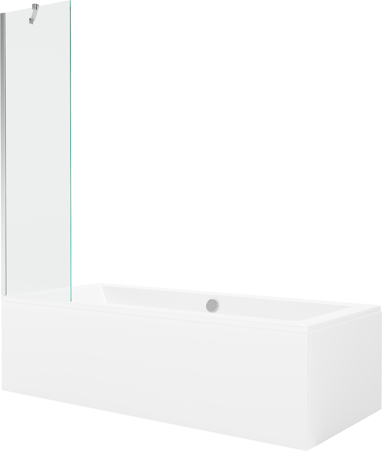 Mexen Cube szögletes kád 170 x 80 cm burkolattal és 1-szárnyú 50 cm-es paravánnal, átlátszó, króm - 550517080X9505000001