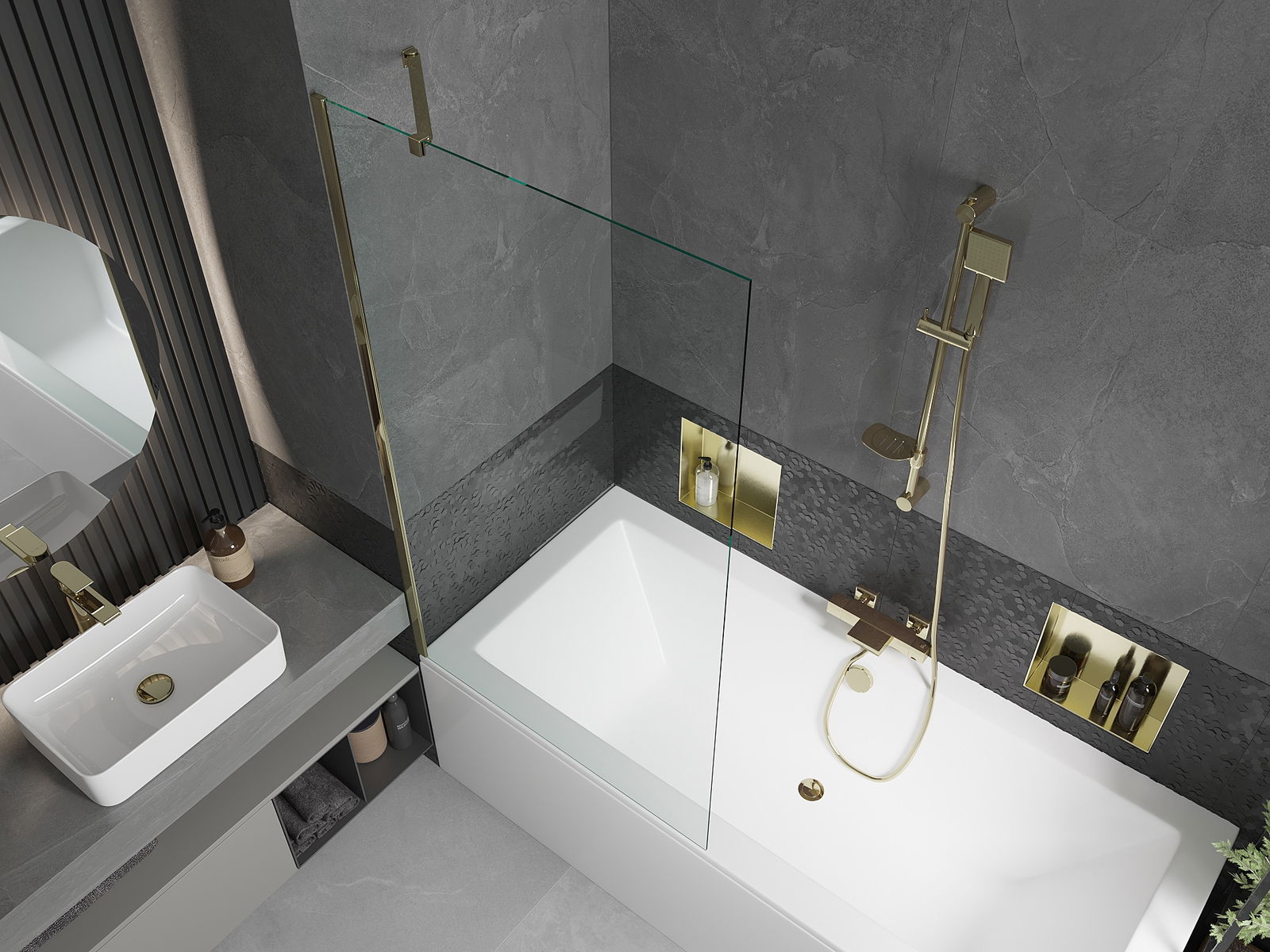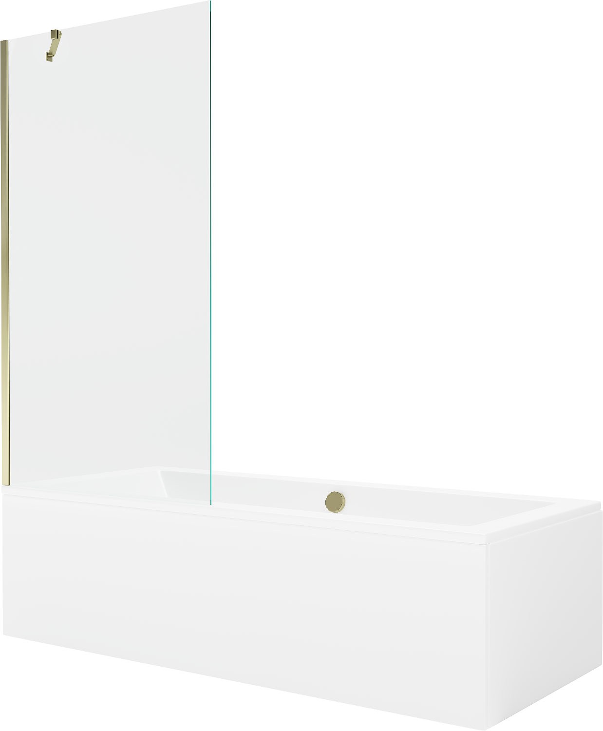 Mexen Cube téglalap alakú kád 170 x 80 cm burkolattal és 1-szárnyú 90 cm-es paravánnal, átlátszó, arany - 550517080X9509000050