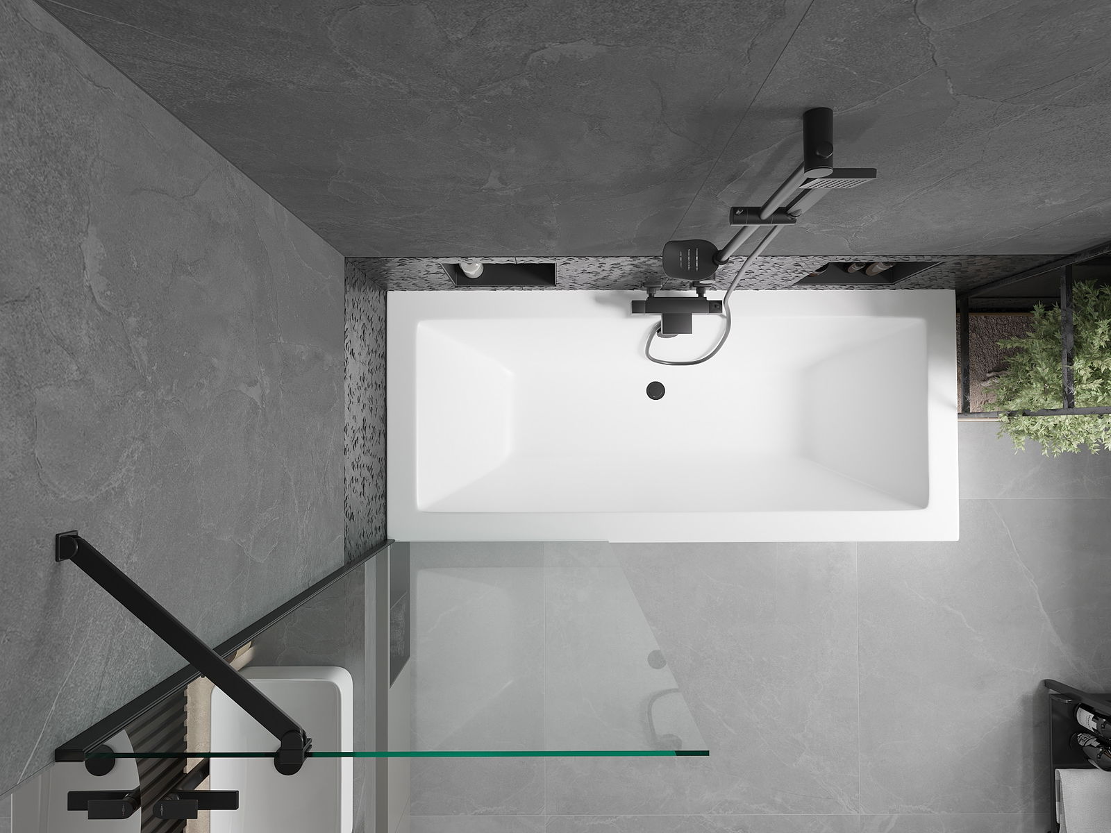 Mexen Cube téglalap alakú kád 170 x 80 cm burkolattal és 1-szárnyú paravánnal 70 cm, átlátszó, fekete - 550517080X9507000070
