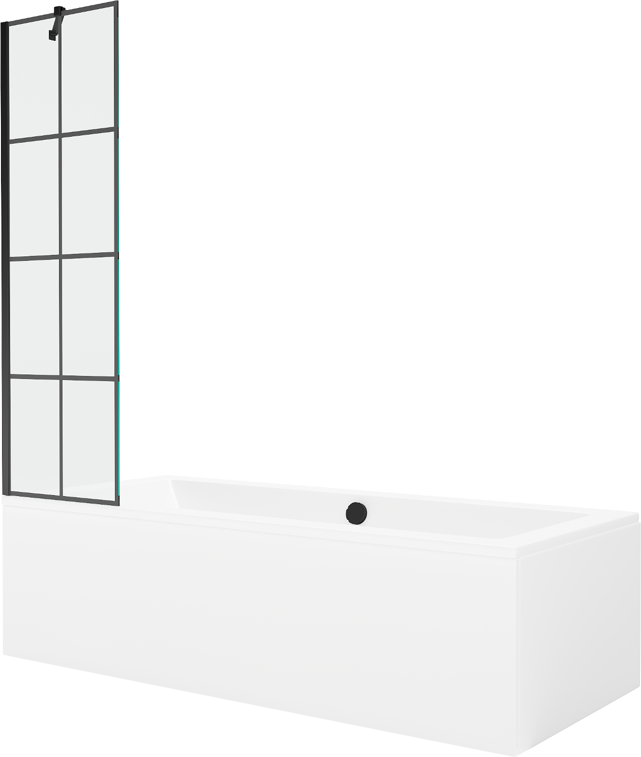 Mexen Cube téglalap alakú kád 170 x 80 cm burkolattal és 1-ajtós paravánnal 50 cm, fekete minta - 550517080X9505007077