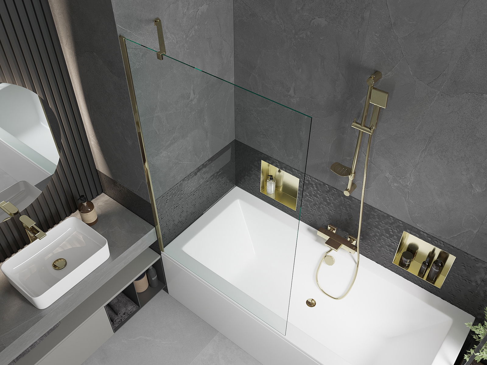 Mexen Cube téglalap alakú kád 180 x 80 cm burkolattal és 1-szárnyas paravánnal 100 cm, átlátszó, arany - 550518080X9510000050