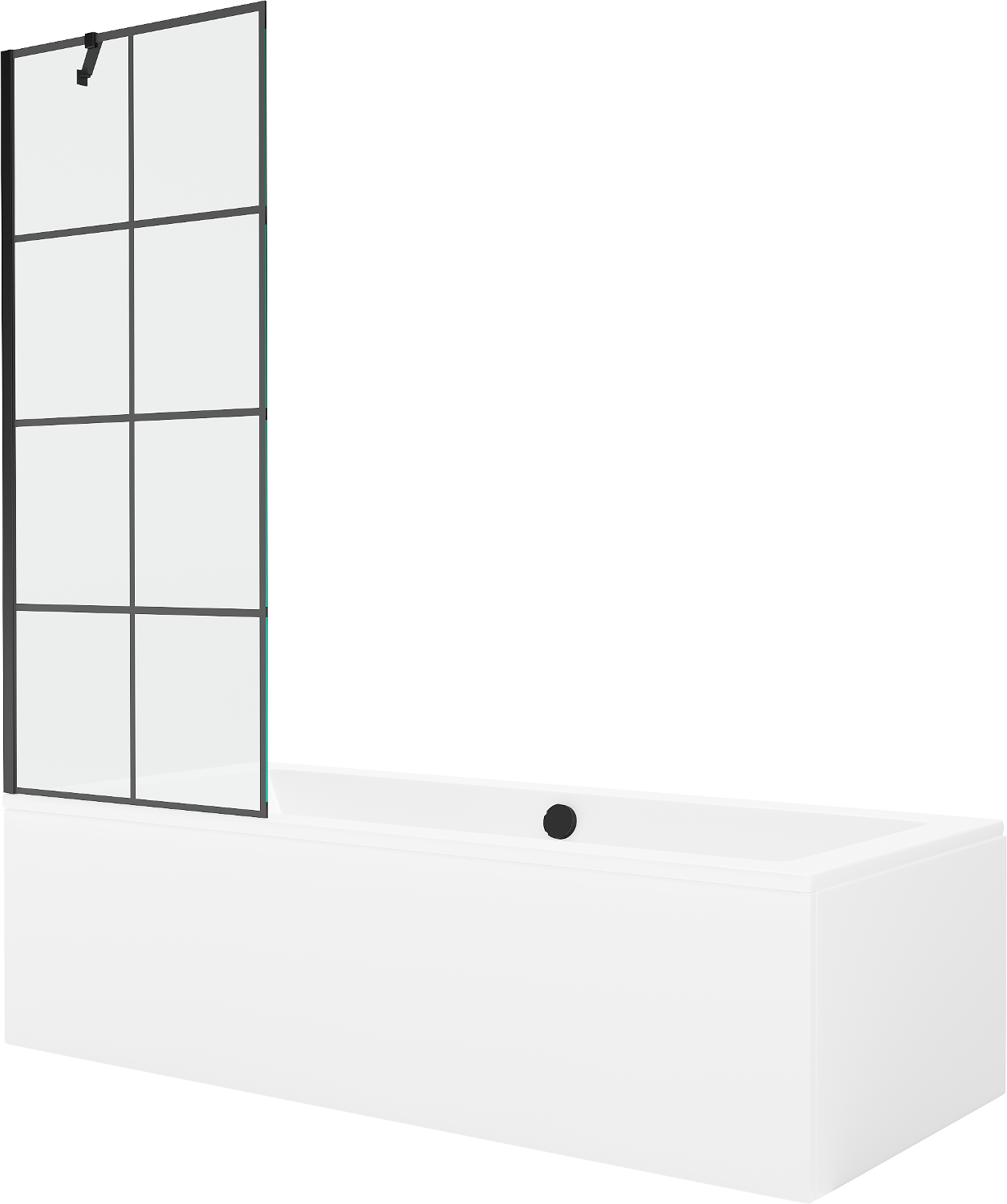 Mexen Cube téglalap alakú kád 180 x 80 cm burkolattal és 1-ajtós paravánnal, 70 cm, fekete mintás - 550518080X9507007077