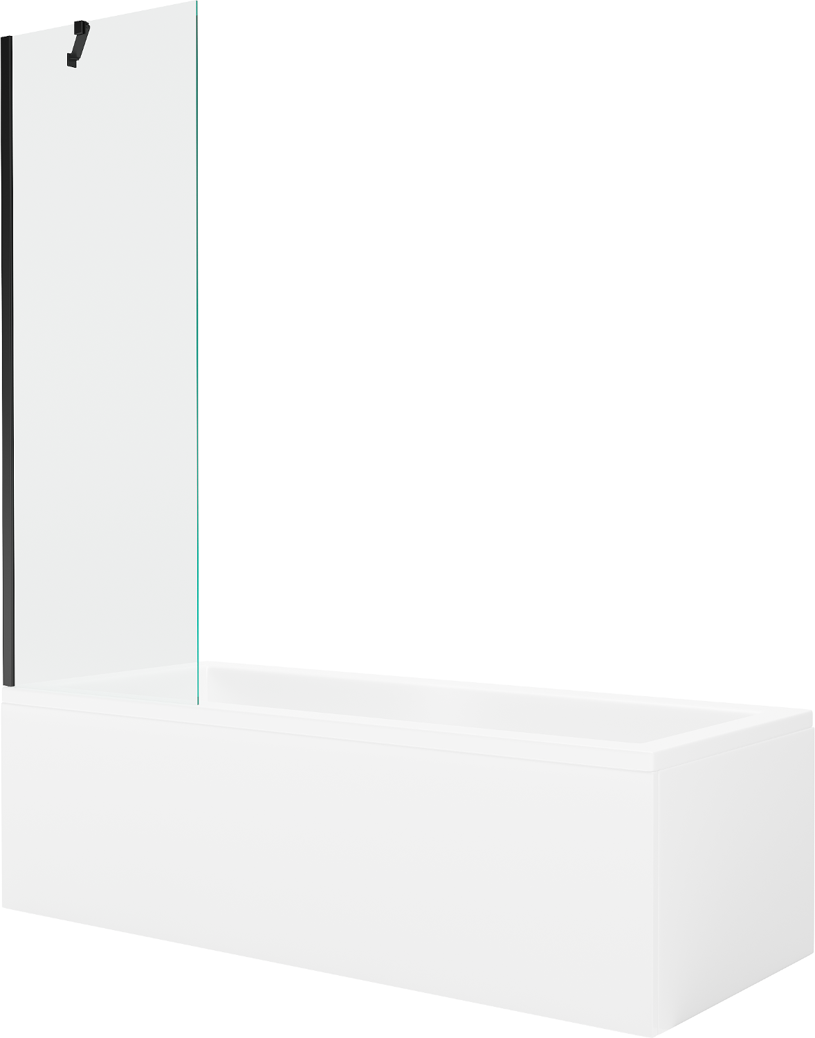 Mexen Cubik téglalap alakú kád 150 x 70 cm burkolattal és 1-szárnyú paravánnal 60 cm, átlátszó, fekete
