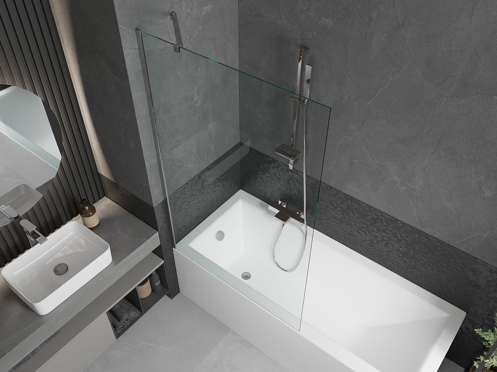 Mexen Cubik téglalap alakú kád 160 x 70 cm burkolattal és 1-szárnyú paravánnal 100 cm, átlátszó, króm - 550316070X9510000001