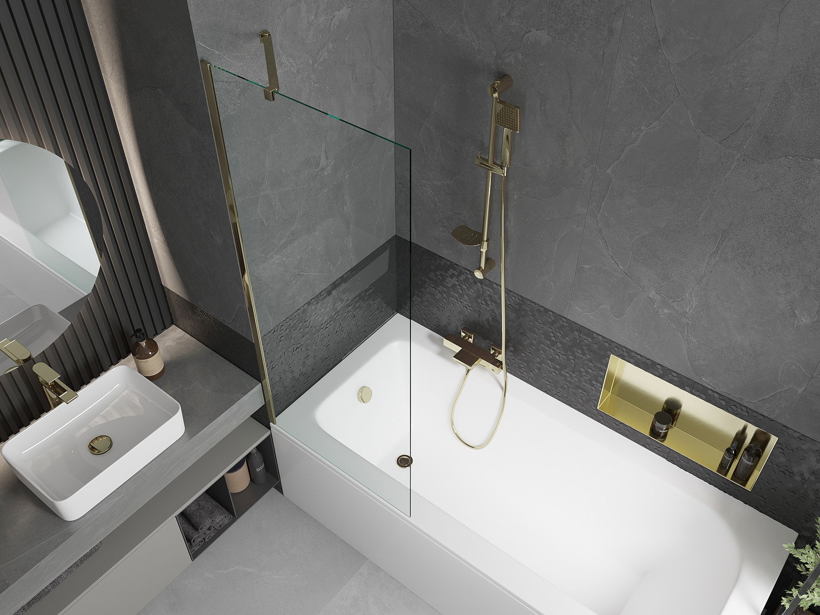 Mexen Vega téglalap alakú kád 150 x 70 cm burkolattal és 1-szárnyú paravánnal 70 cm, átlátszó, arany - 550115070X9507000050