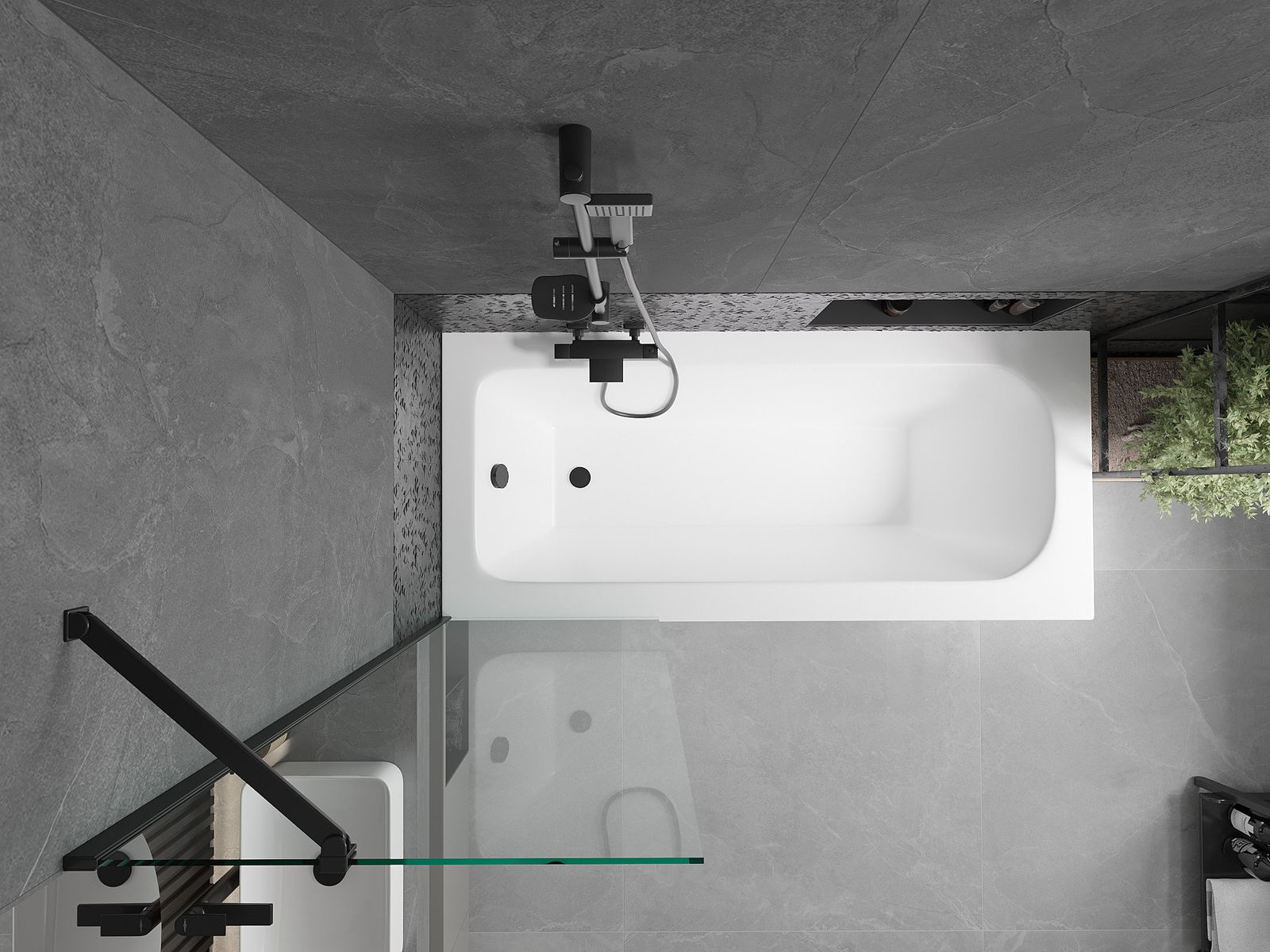 Mexen Vega téglalap alakú kád 160 x 70 cm burkolattal és 1 szárnyú paravánnal, 60 cm, átlátszó, fekete - 550116070X9506000070