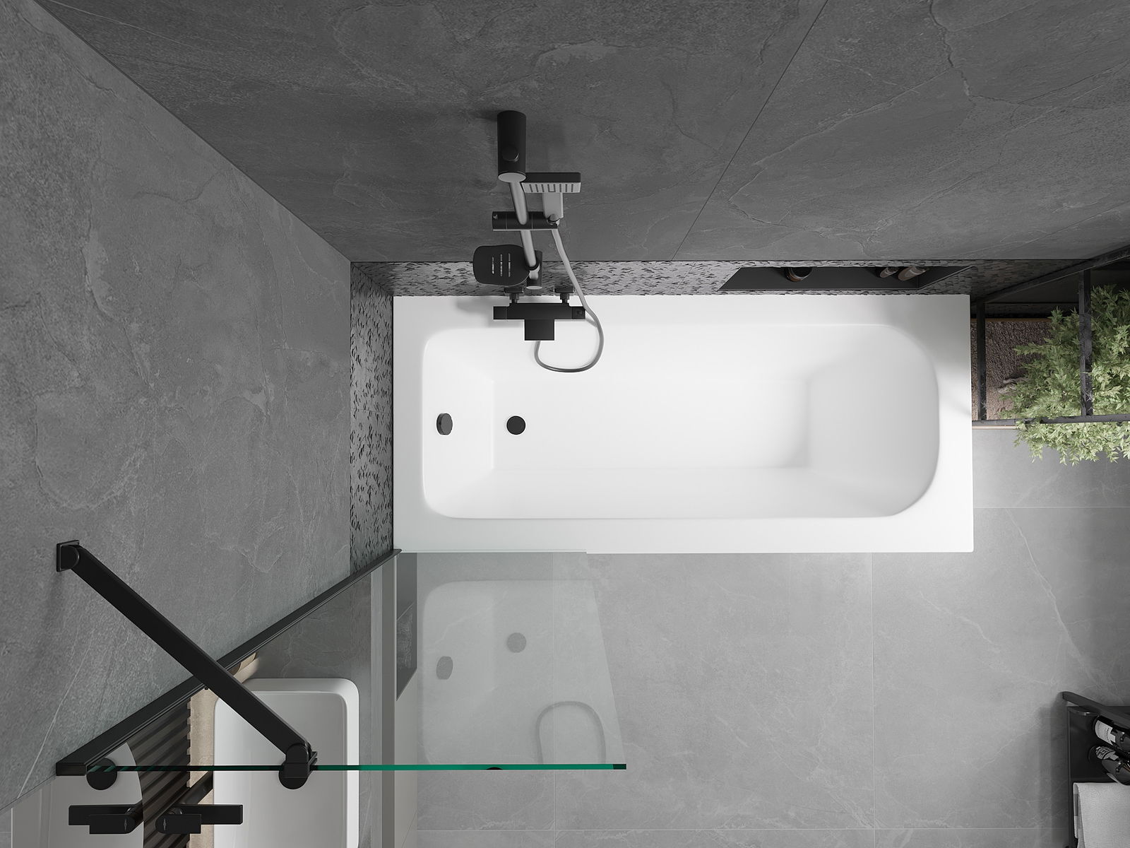 Mexen Vega téglalap alakú kád 170 x 70 cm borítással és 1-szárnyú 60 cm-es paravánnal, átlátszó, fekete