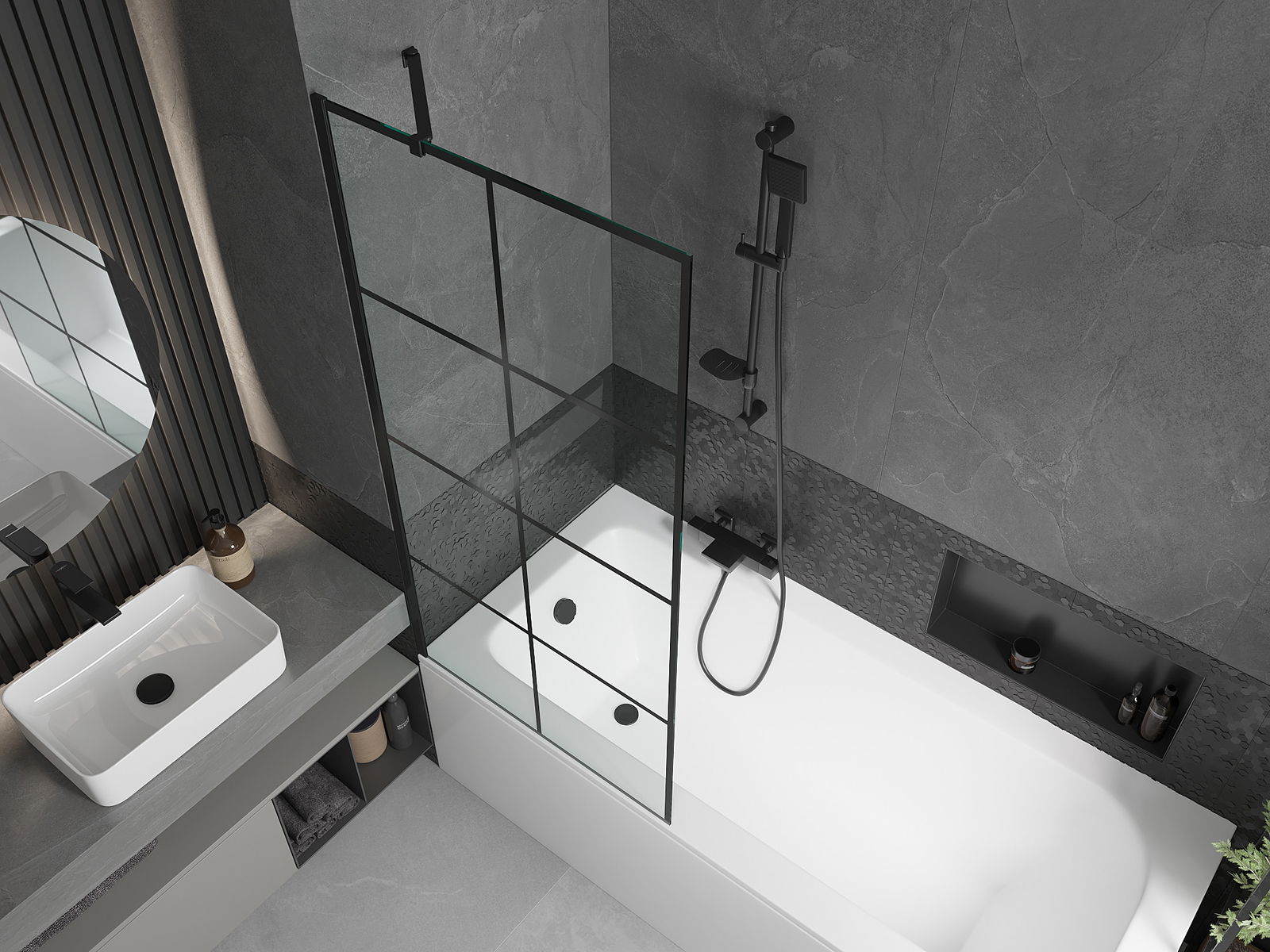 Az univerzális rögzítő rendszer használatával a képernyő jobbra vagy balra szerelhető, az Ön igényeitől függően. Ilyen módon könnyen megtervezheti a fürdőszobához szabott zuhanyt.