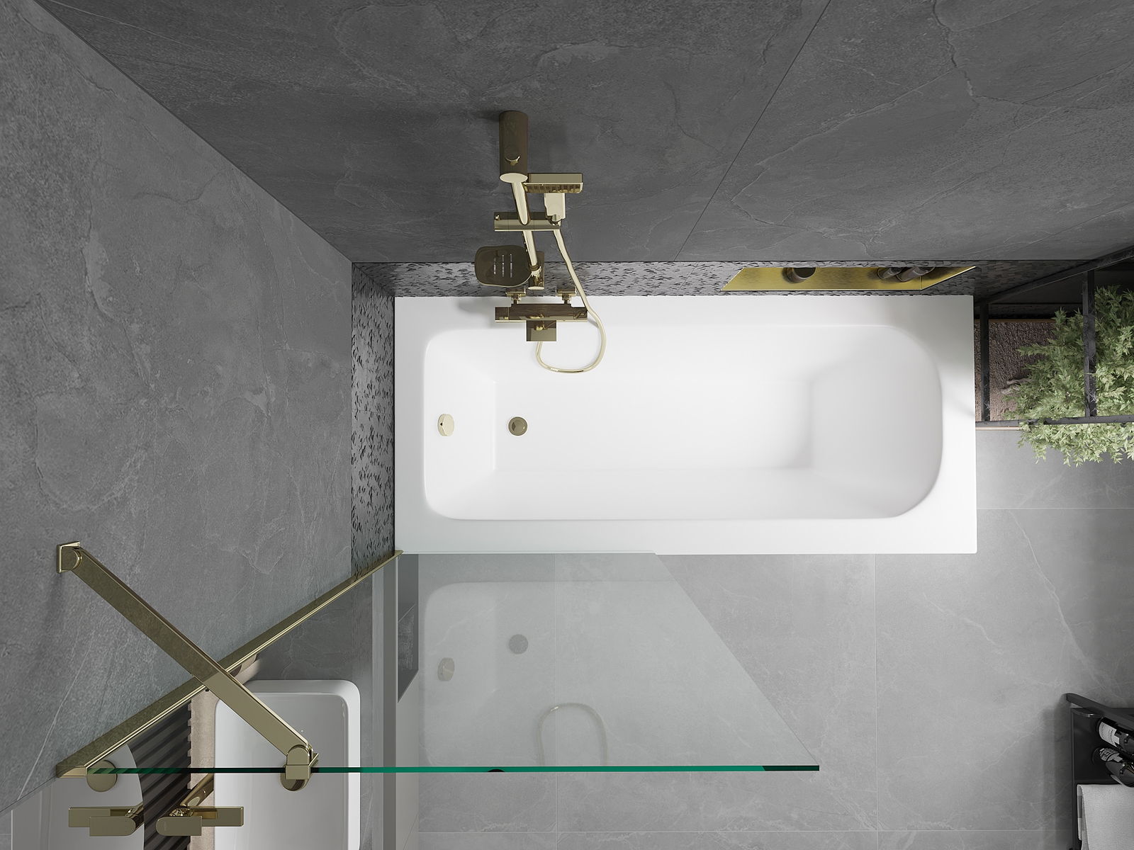 Mexen Vega téglalap alakú kád 180 x 80 cm burkolattal és 1 szárnyú, 80 cm-es paravánnal, átlátszó, arany - 550118080X9508000050