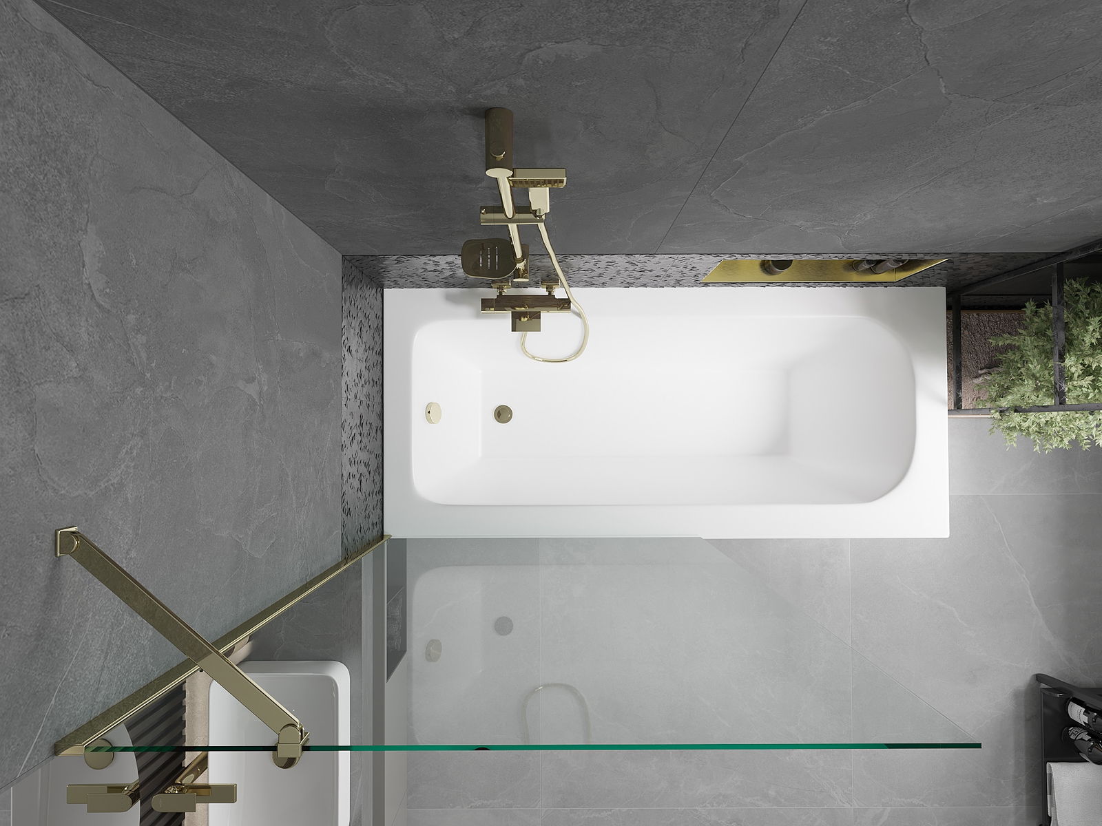 Mexen Vega téglalap alakú kád 180 x 80 cm burkolattal és 1-szárnyú paravánnal 100 cm, átlátszó, arany - 550118080X9510000050