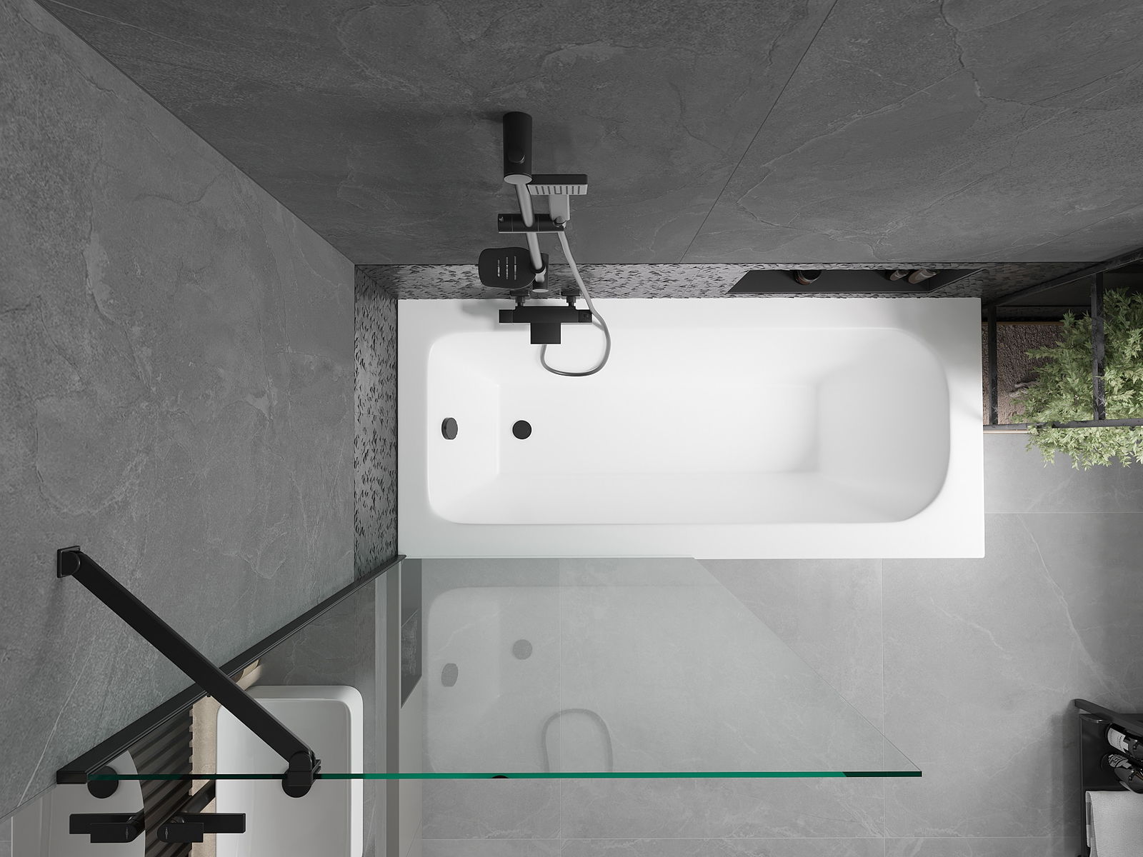 Mexen Vega téglalap alakú kád 180 x 80 cm burkolattal és 90 cm-es, egyajtós paravánnal, átlátszó, fekete - 550118080X9509000070