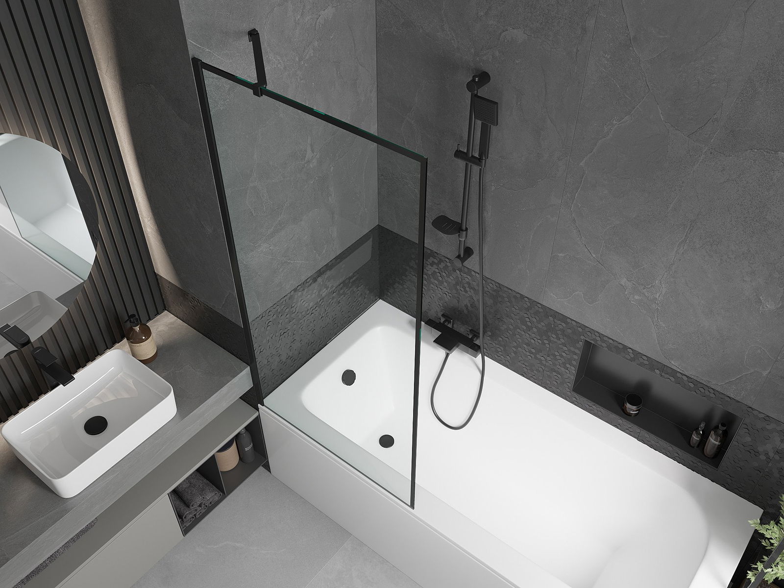 Mexen Vega téglalap alakú kád 180 x 80 cm burkolattal és 1-szárnyú paravánnal 80 cm, fekete minta - 550118080X9508007070