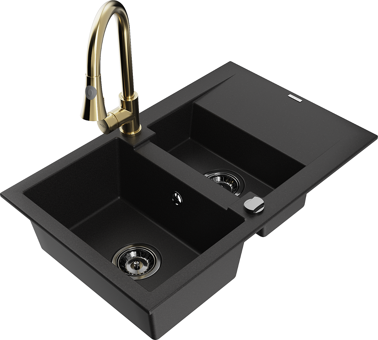 Mexen Gaspar 1,5 rekeszes gránit mosogatótálca lefolyóval és Elia konyhai csapteleppel, fekete - 6507-77-670101-50-B