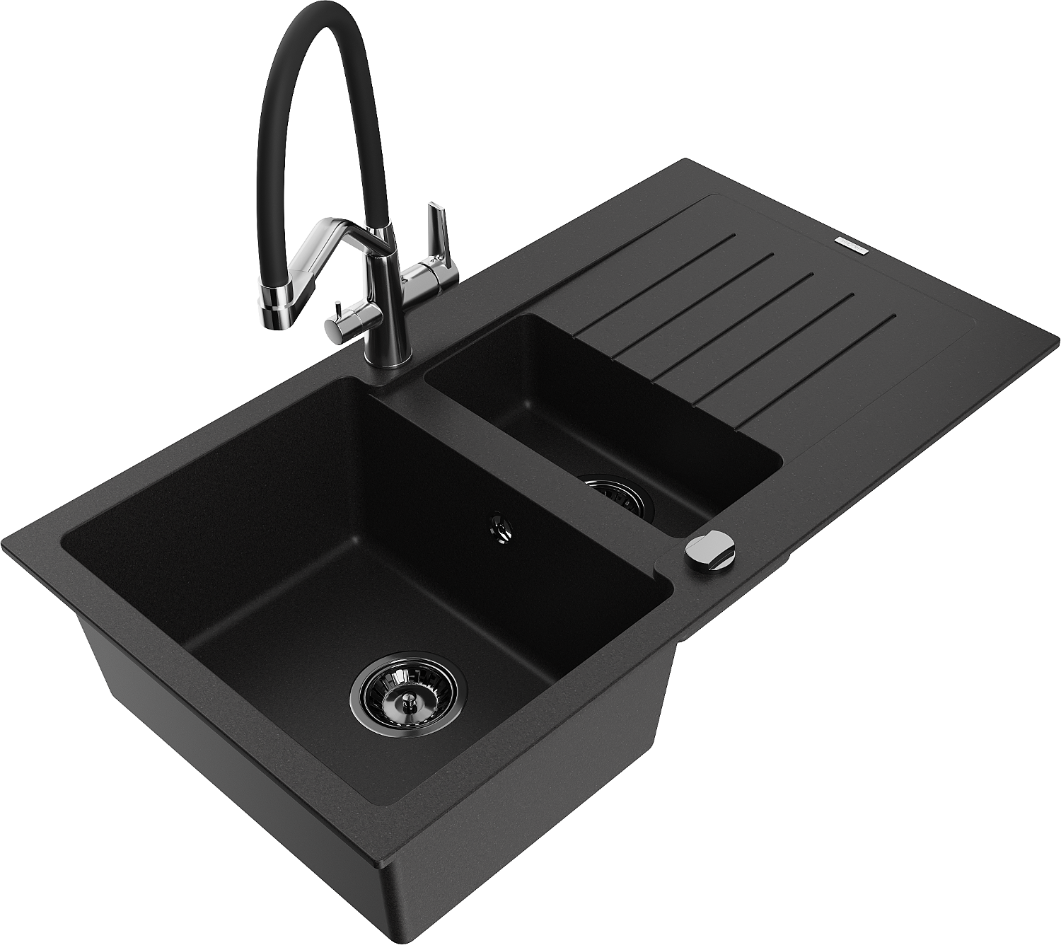 Mexen Matias 1,5 rekeszes gránit mosogató csepegtetővel és Duo konyhai csapteleppel, fekete - 6502-77-671701-07-B