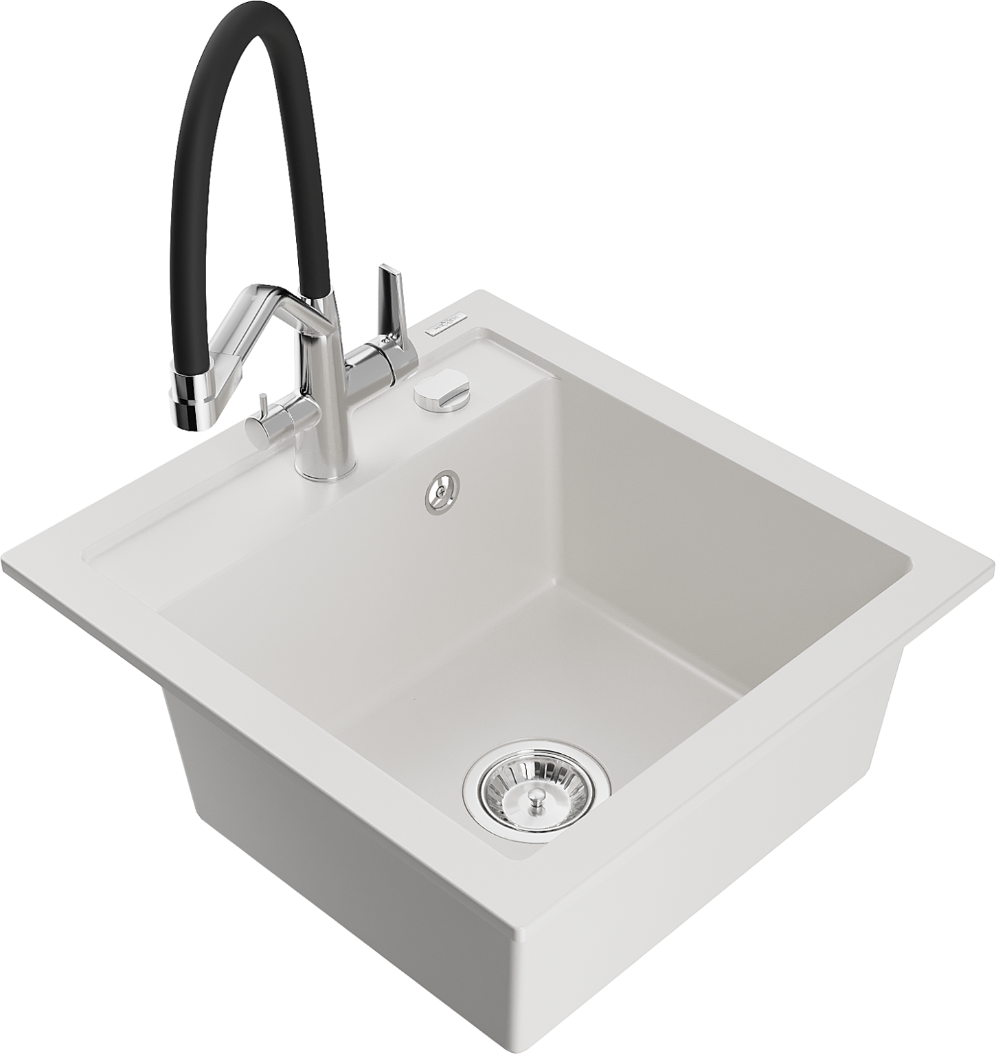 Mexen Vito gránit mosogatótál 1 rekeszes konyhai csapteleppel Duo, fehér - 6503-20-671701-07