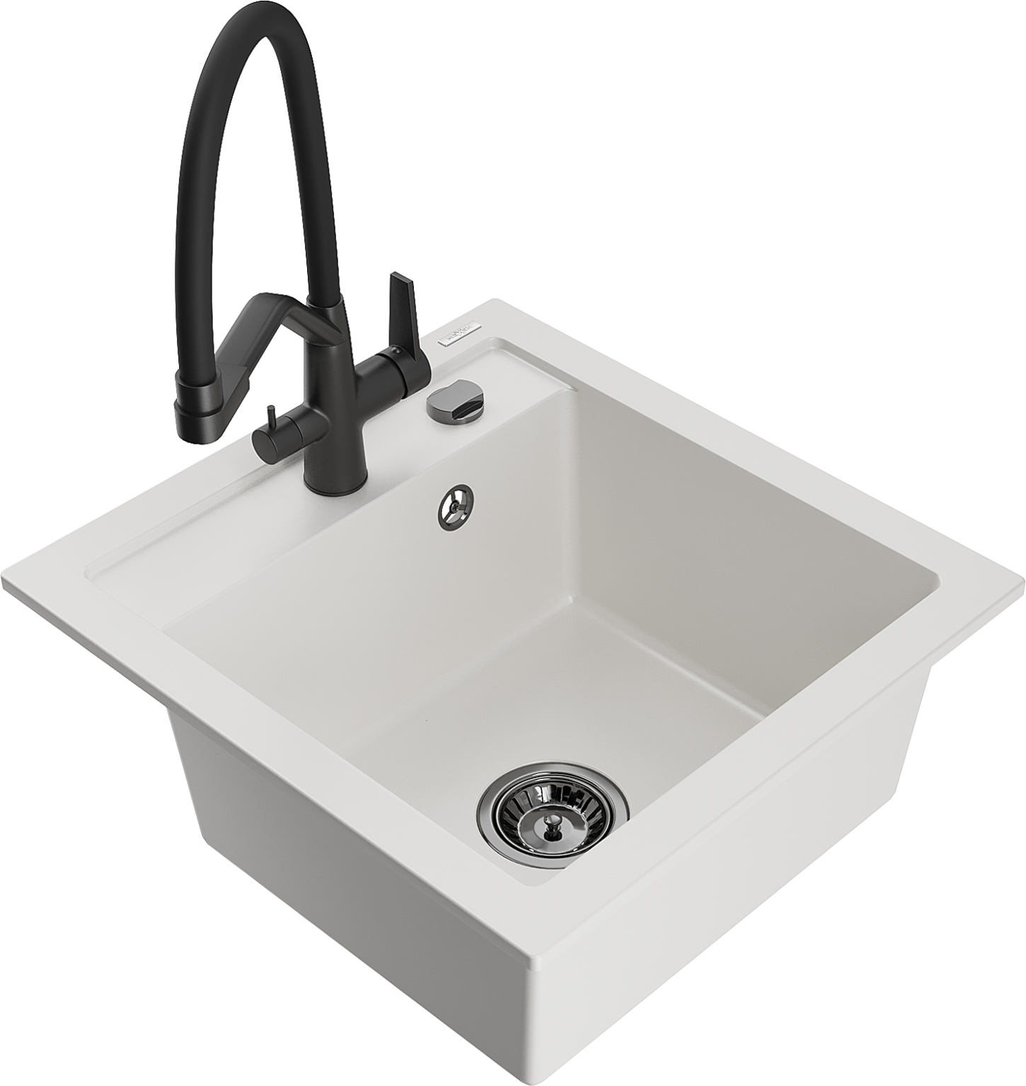 Mexen Vito gránit mosogató 1-medencés konyhai csappal, fehér - 6503-20-671701-70-B