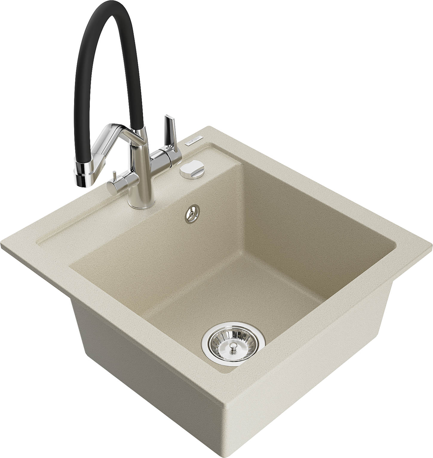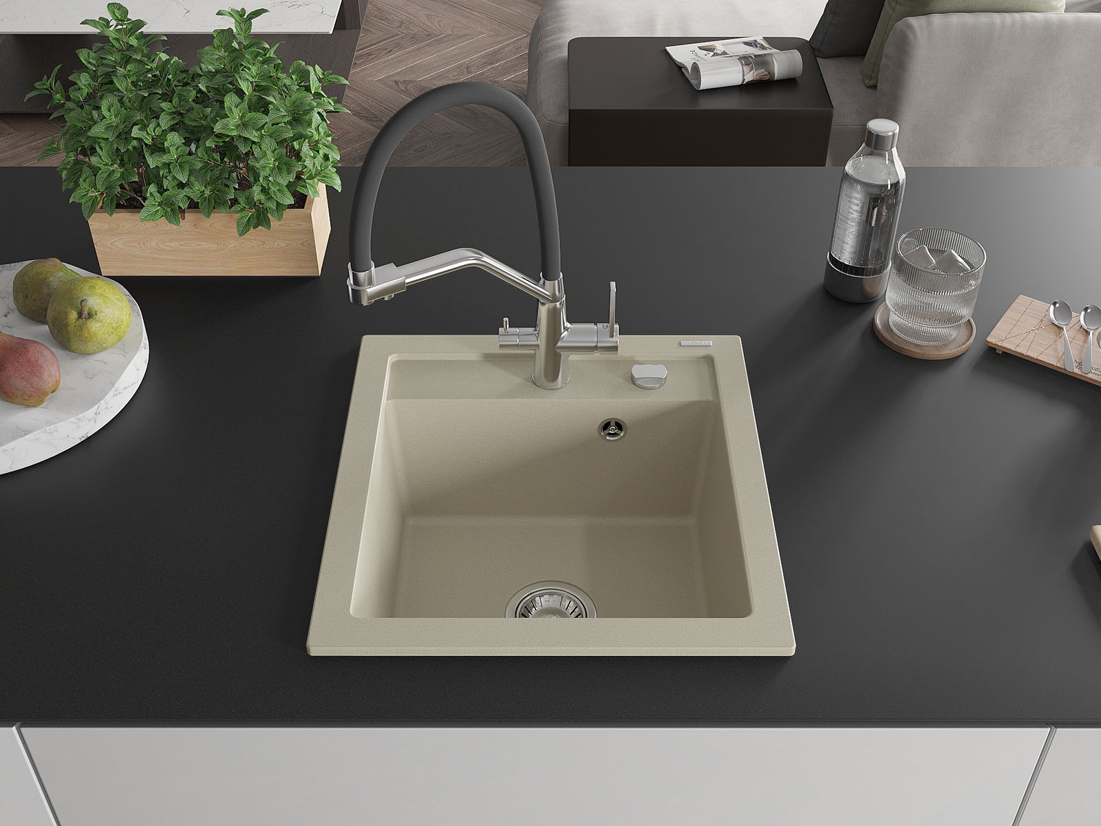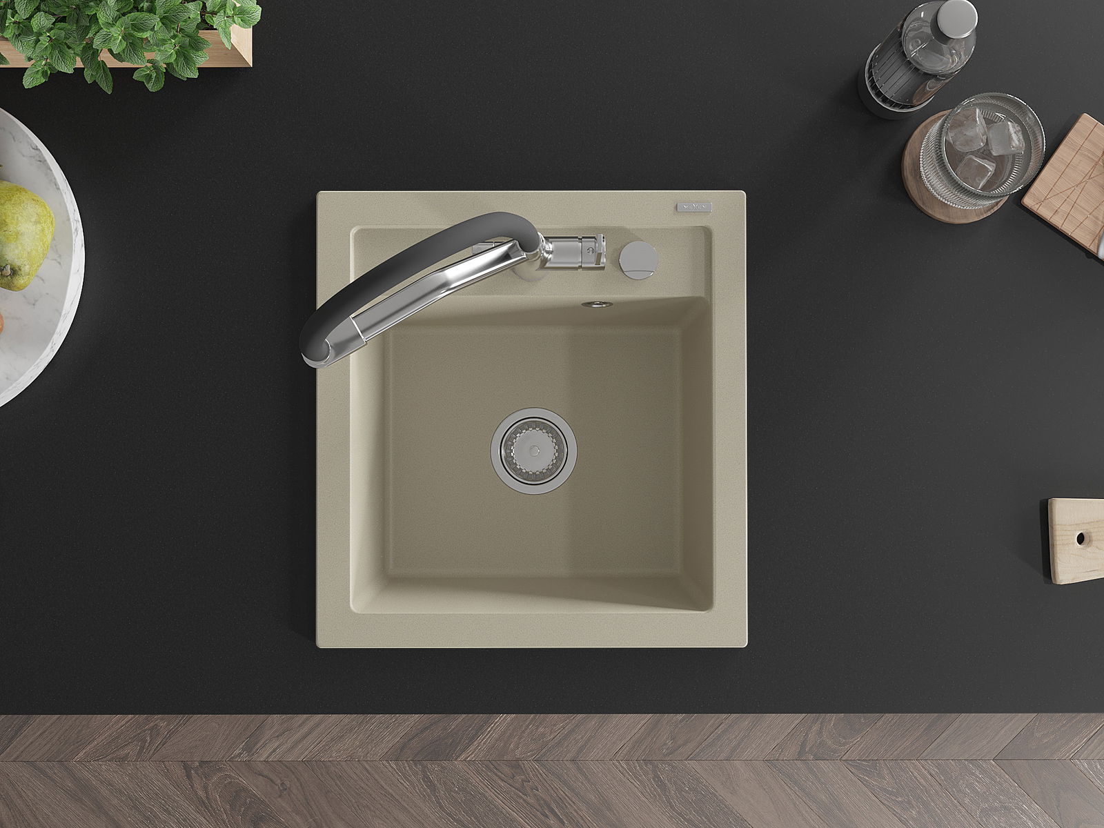 A mosogató kiváló minőségű gránitból készül. Ez egy elegáns és mindenekelőtt minden konyhához praktikus kiegészítés, stílusától függetlenül. A kiváló minőségű és a gránit tartósság biztosítja a sok éves használatát.