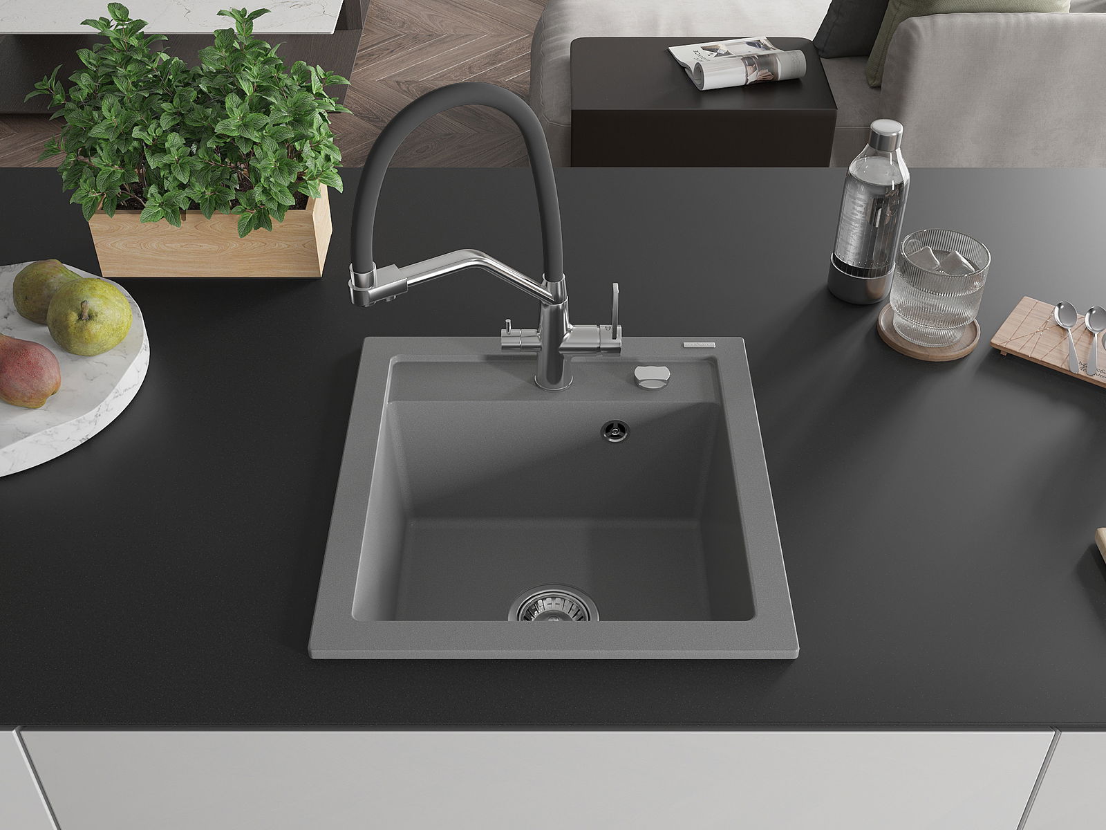 A mosogató magas minőségű gránitból készült. Elegáns, de mindenekelőtt praktikus kiegészítője minden konyhának, függetlenül annak stílusától. A gránit magas minősége és tartóssága hosszú távú használatot biztosít.