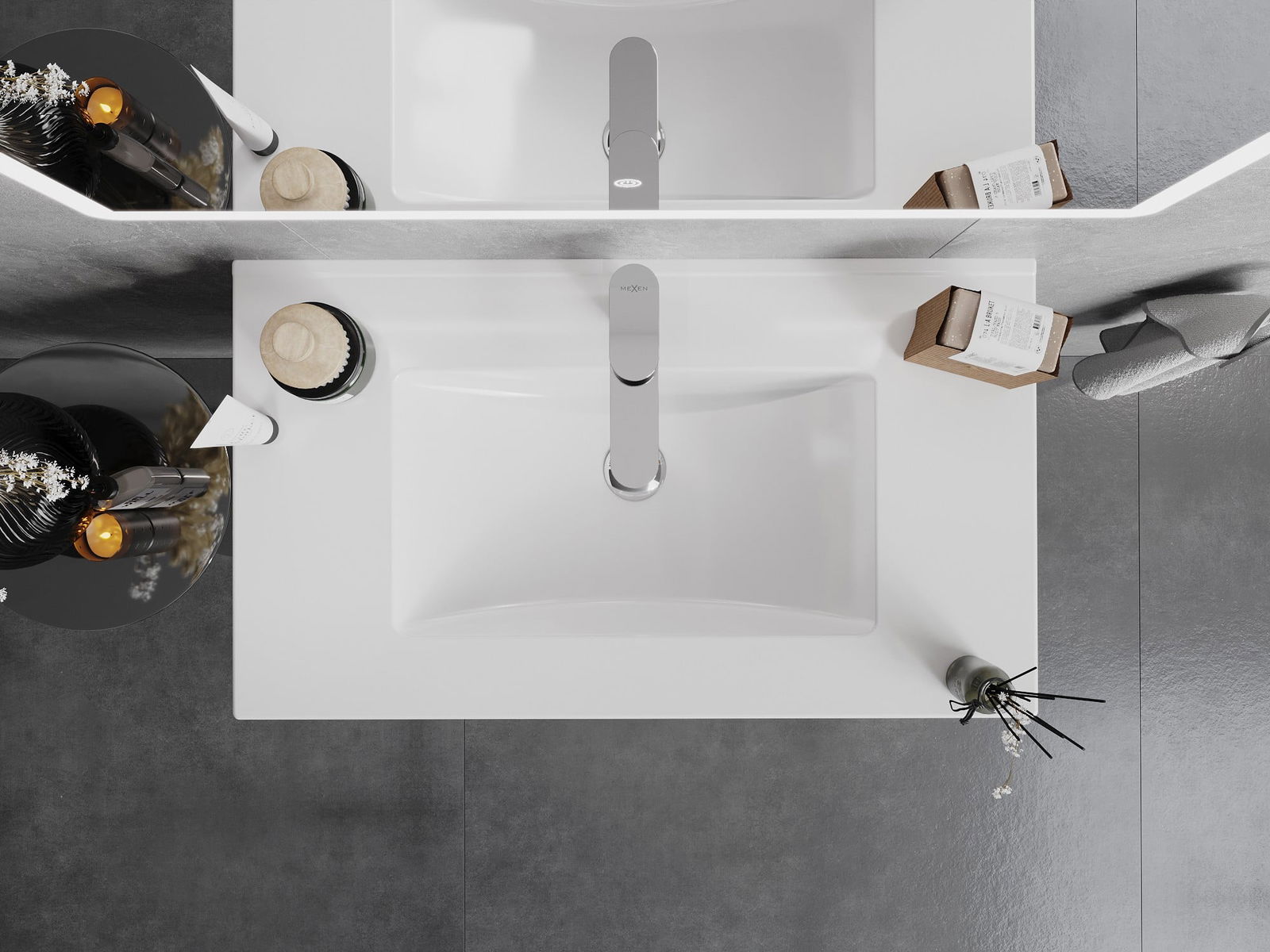 A mosdókagyló rendelkezik egy nyílással, amelybe csaptelepet szerelhetünk. Ez lehetővé teszi az értékes hely megtakarítását a fürdőszobában, valamint kiemeli annak esztétikáját. Ez a megoldás megkönnyíti a mosdókagyló körüli tisztaság fenntartását is.