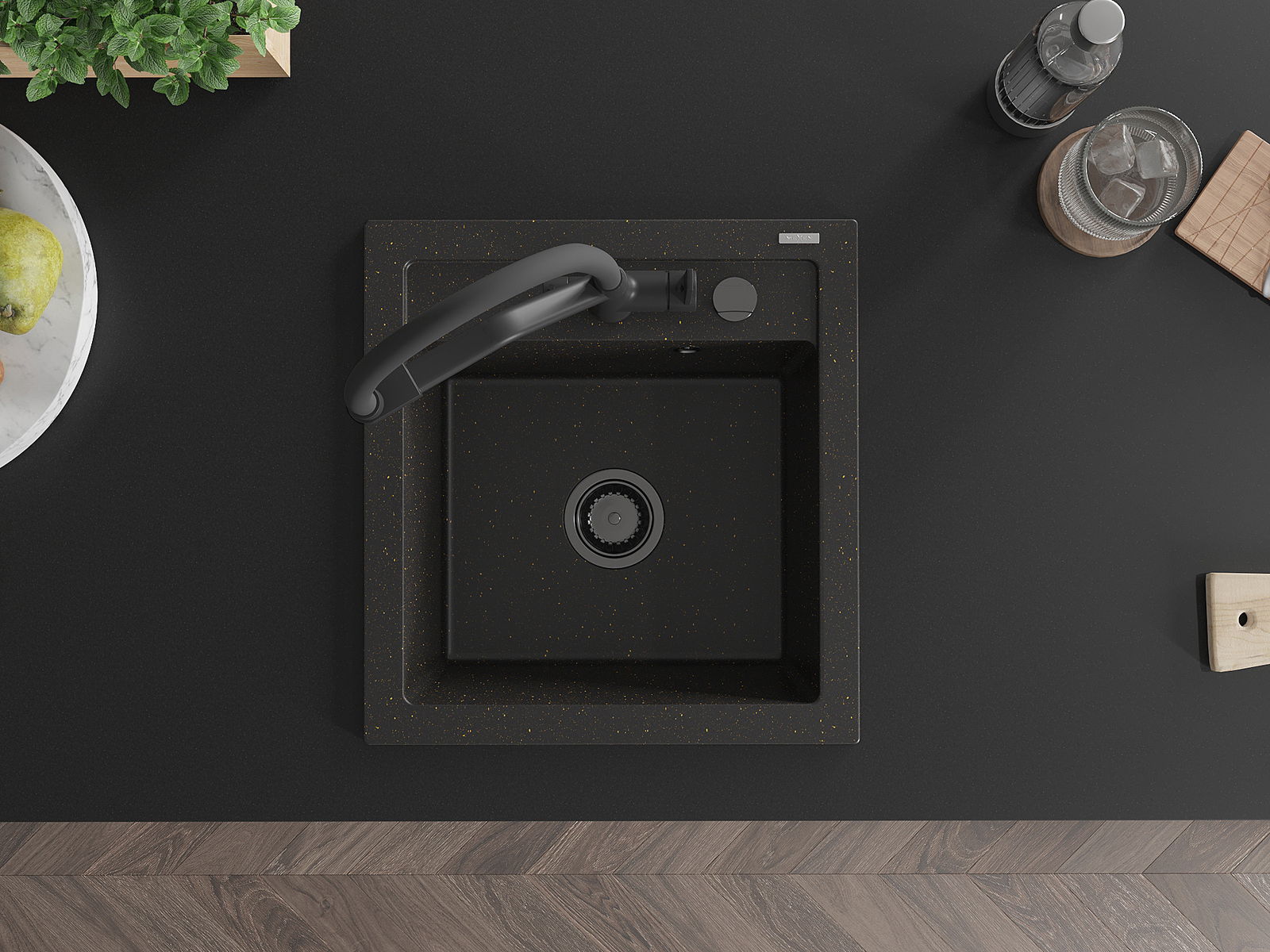 Mexen Vito egymedencés gránit mosogató Duo konyhai csappal, fekete/arany metál - 6503-75-671701-70-B