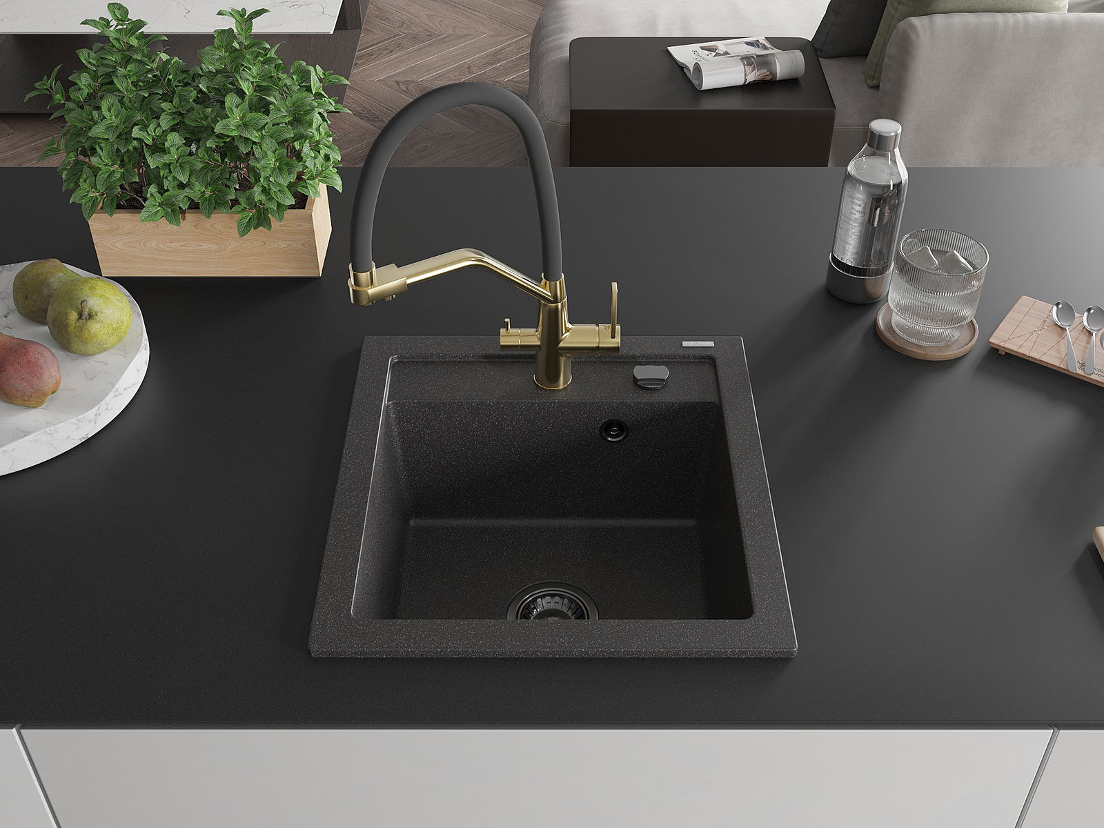 A mosogató kiváló minőségű gránitból készül. Ez egy elegáns és mindenekelőtt minden konyhához praktikus kiegészítés, stílusától függetlenül. A kiváló minőségű és a gránit tartósság biztosítja a sok éves használatát.