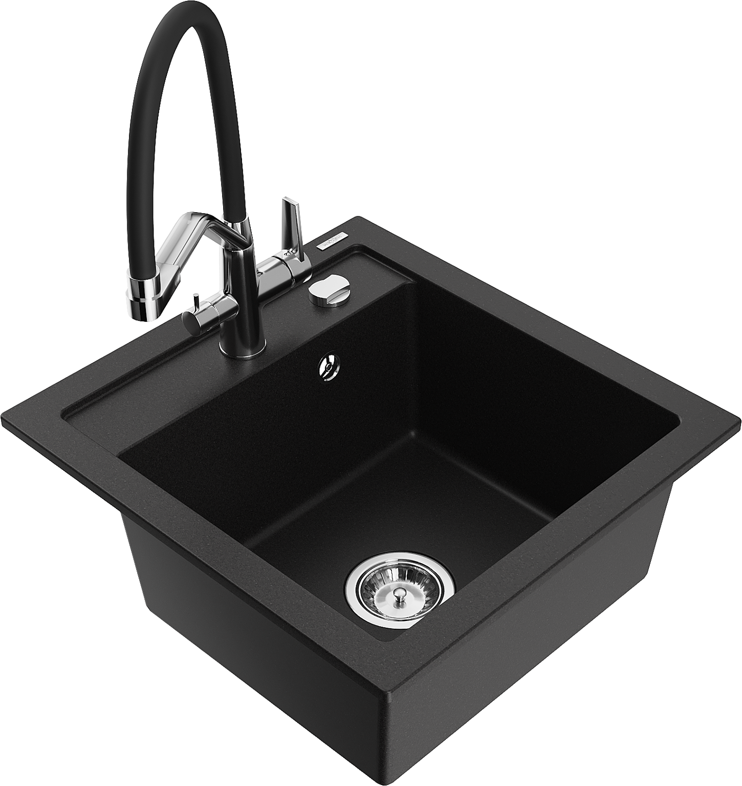 Mexen Vito 1-mosogatómedencés gránit mosogató Duo konyhai csappal, fekete - 6503-77-671701-07