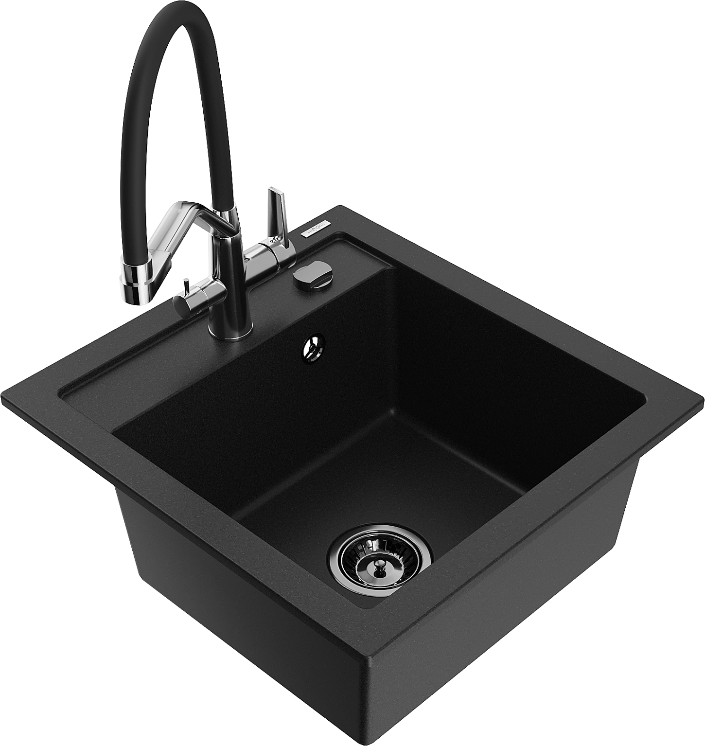 Mexen Vito gránit mosogató 1-medencés Duo konyhai csappal, fekete - 6503-77-671701-07-B