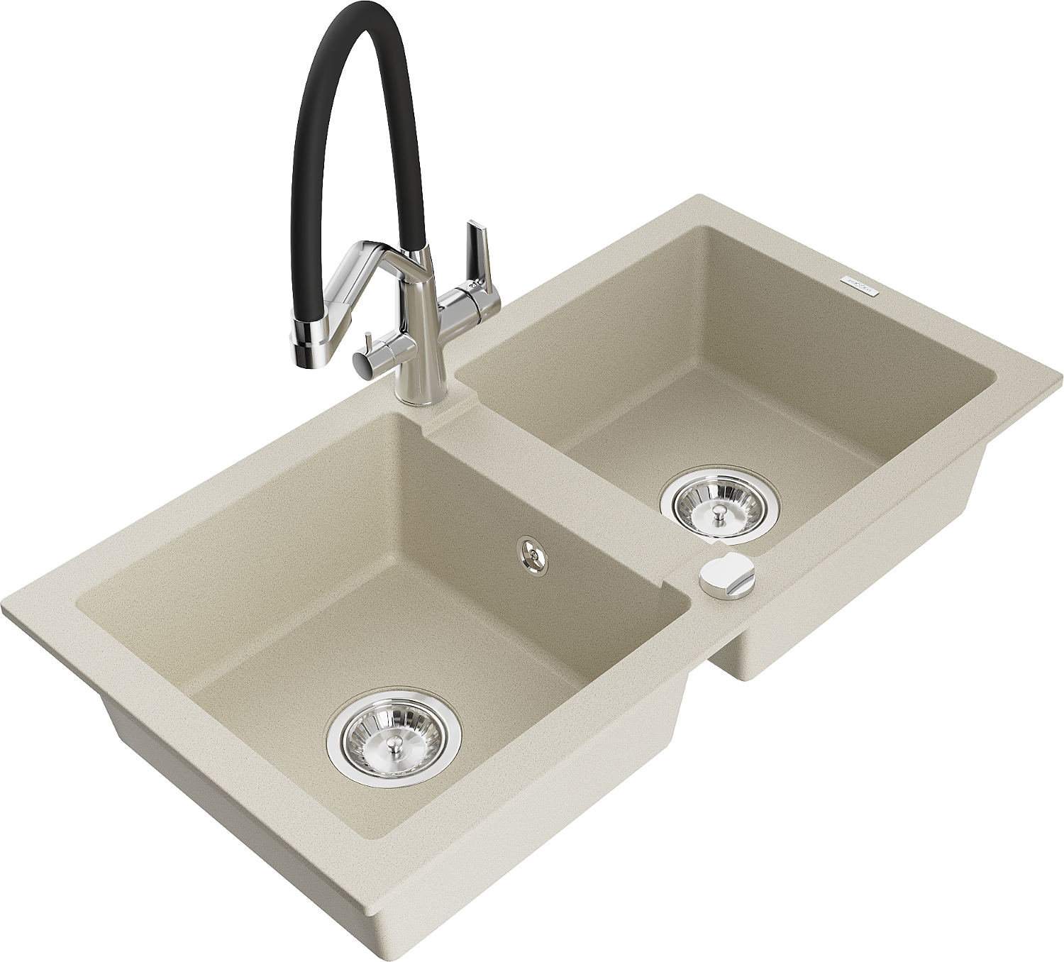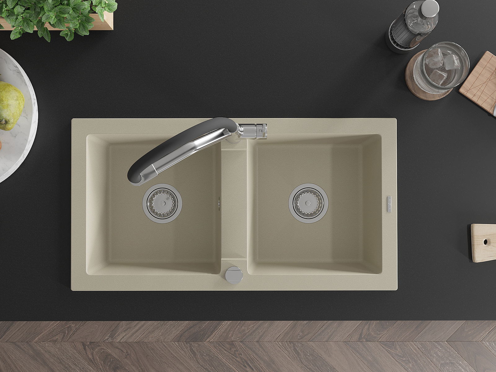 Mexen Mario 2 rekeszes gránit mosogató konyhai csapteleppel Duo, bézs - 6504-69-671701-07