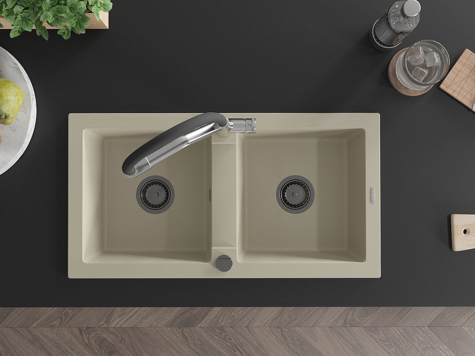 Mexen Mario gránit kétmedencés mosogató Duo konyhai csapteleppel, bézs - 6504-69-671701-07-B