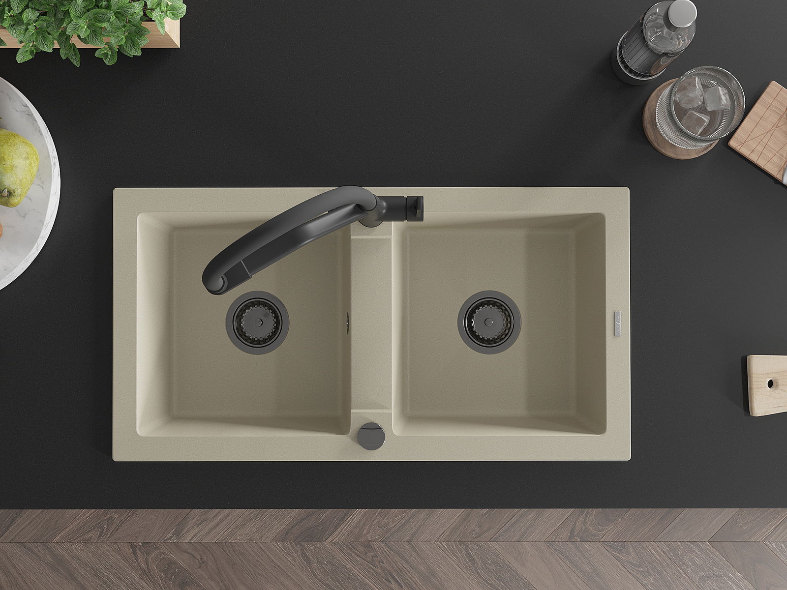 A mosogató kiváló minőségű gránitból készül. Ez egy elegáns és mindenekelőtt minden konyhához praktikus kiegészítés, stílusától függetlenül. A kiváló minőségű és a gránit tartósság biztosítja a sok éves használatát.