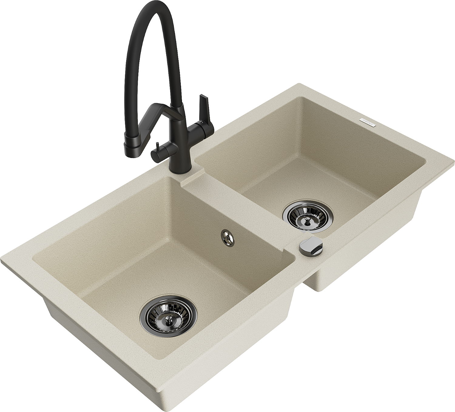 Mexen Mario 2 rekeszes gránit mosogató Duo konyhai csappal, bézs - 6504-69-671701-70-B