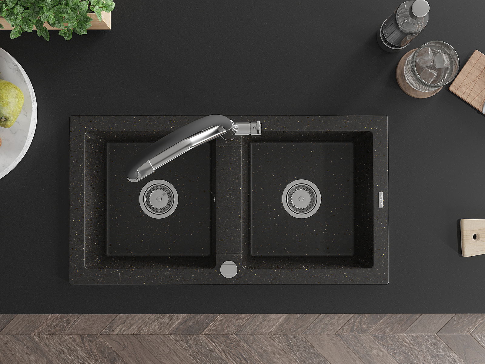 A mosogató kiváló minőségű gránitból készül. Ez egy elegáns és mindenekelőtt minden konyhához praktikus kiegészítés, stílusától függetlenül. A kiváló minőségű és a gránit tartósság biztosítja a sok éves használatát.