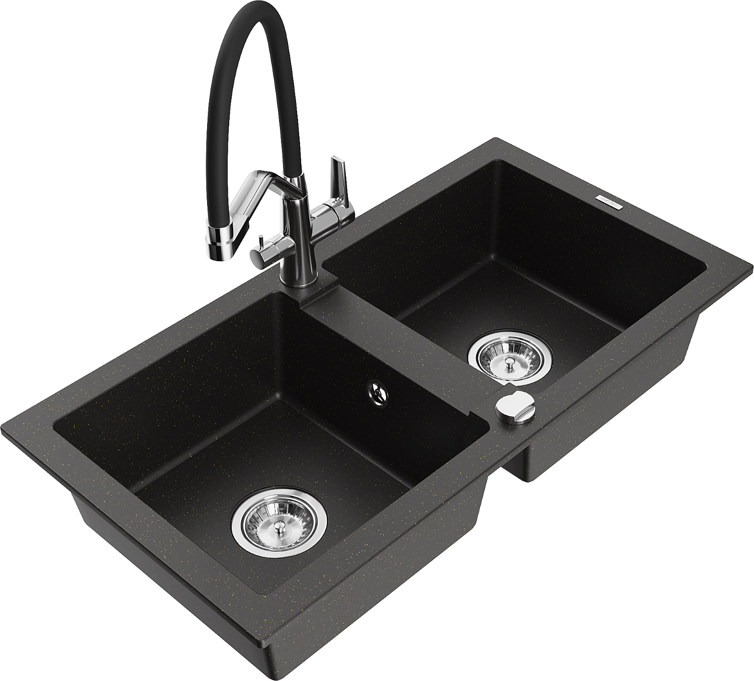 Mexen Mario 2 kamrás gránit mosogató csapteleppel Duo, fekete/arany metál - 6504-75-671701-07