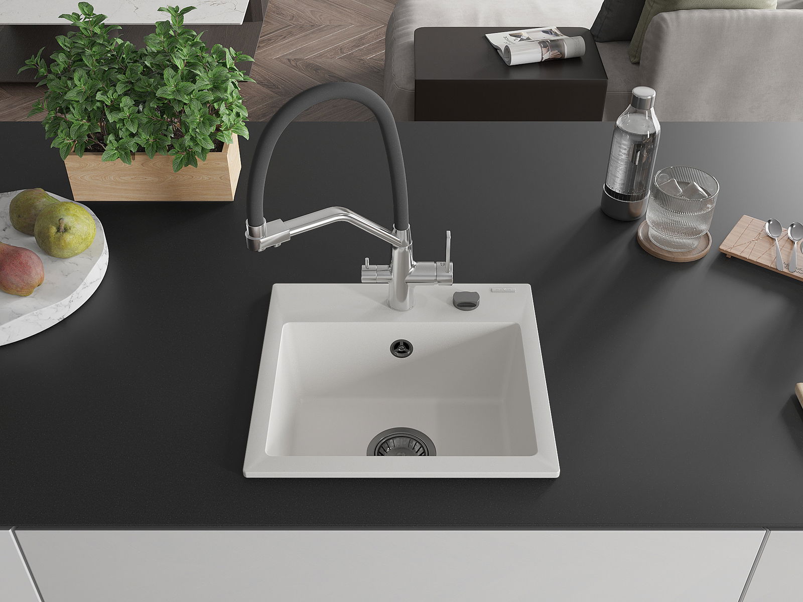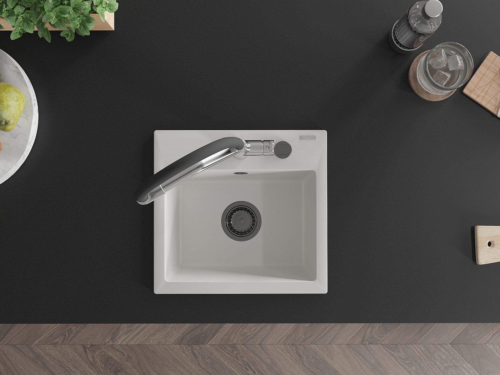 A mosogató magas minőségű gránitból készült. Elegáns, de mindenekelőtt praktikus kiegészítője minden konyhának, függetlenül annak stílusától. A gránit magas minősége és tartóssága hosszú távú használatot biztosít.