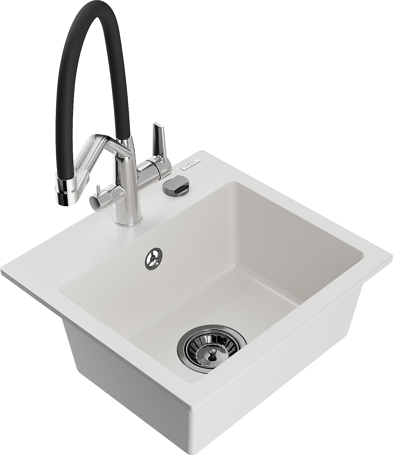 Mexen Milo 1-medencés gránit mosogató Duo konyhai csappal, fehér - 6505-20-671701-07-B
