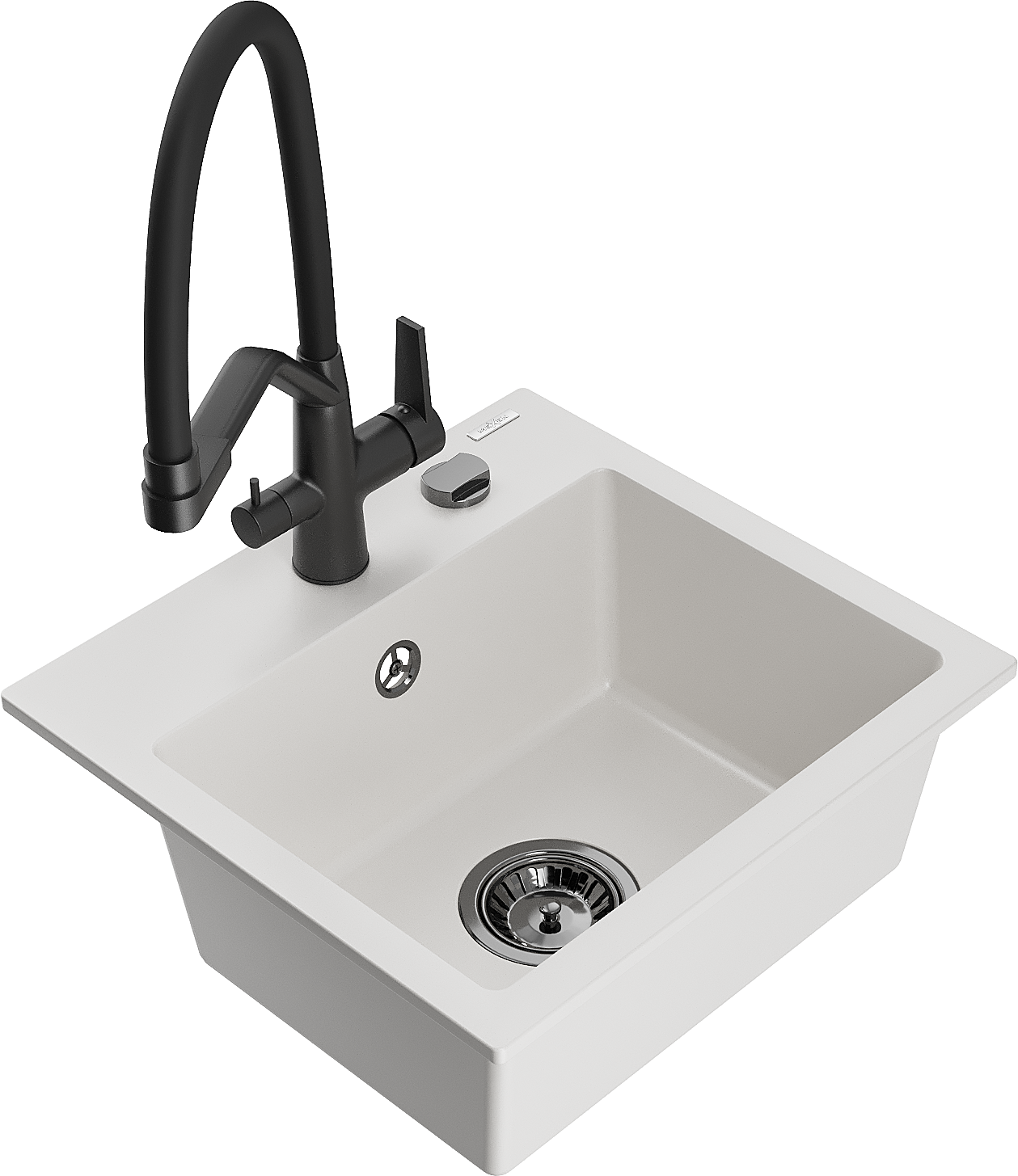 A mosogató magas minőségű gránitból készült. Elegáns, de mindenekelőtt praktikus kiegészítője minden konyhának, függetlenül annak stílusától. A gránit magas minősége és tartóssága hosszú távú használatot biztosít.