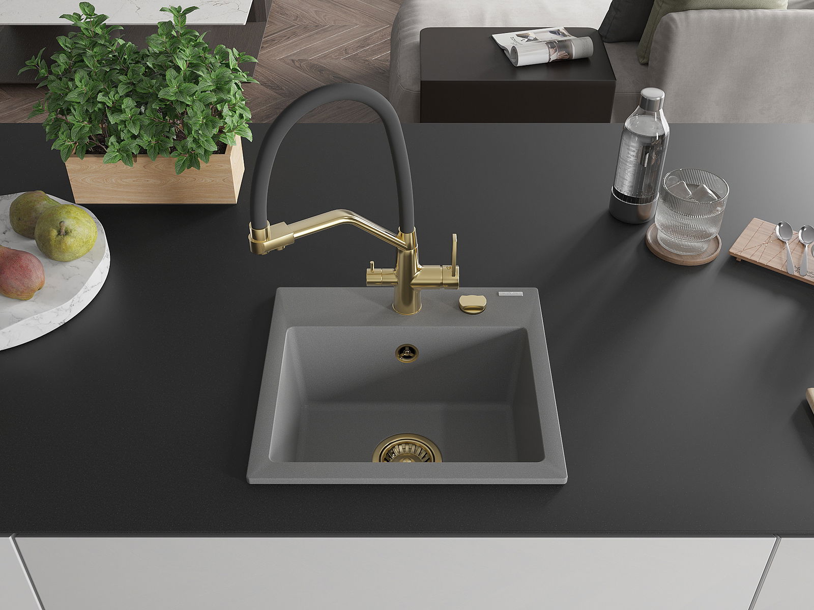 A mosogató magas minőségű gránitból készült. Elegáns, de mindenekelőtt praktikus kiegészítője minden konyhának, függetlenül annak stílusától. A gránit magas minősége és tartóssága hosszú távú használatot biztosít.