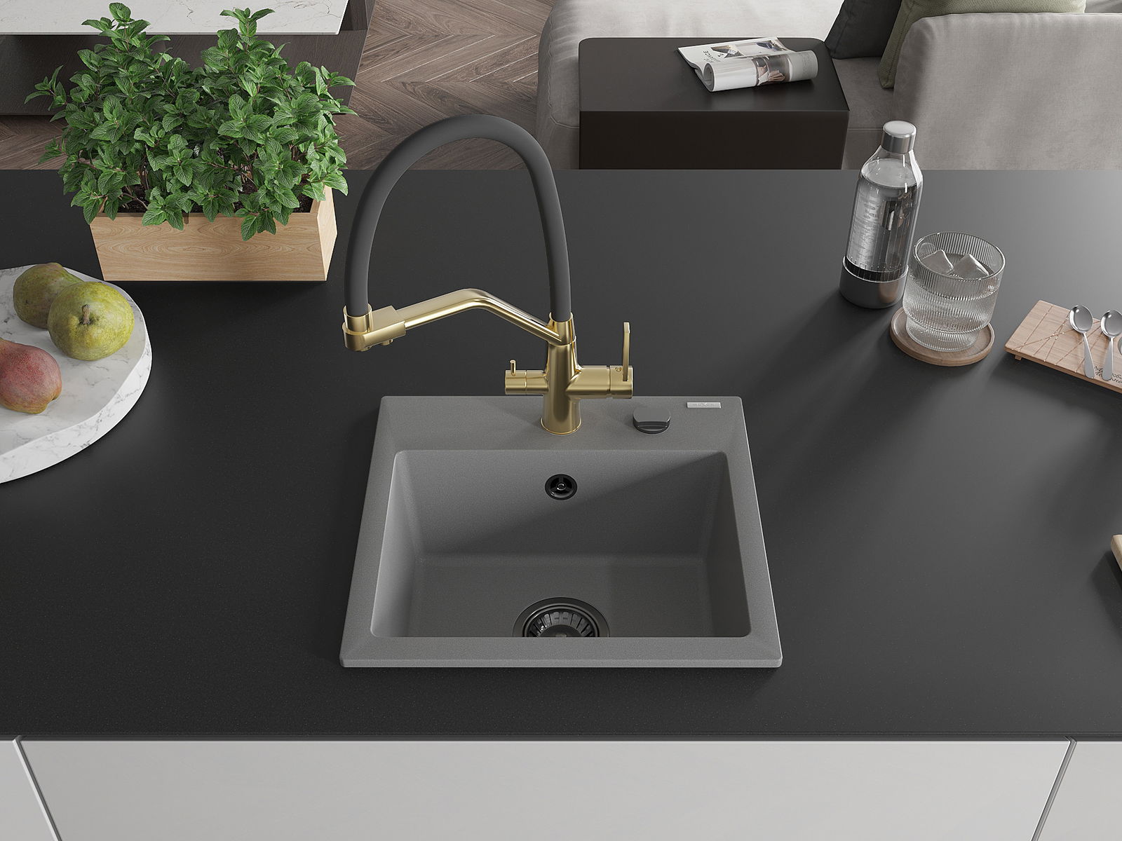 A mosogató magas minőségű gránitból készült. Elegáns, de mindenekelőtt praktikus kiegészítője minden konyhának, függetlenül annak stílusától. A gránit magas minősége és tartóssága hosszú távú használatot biztosít.