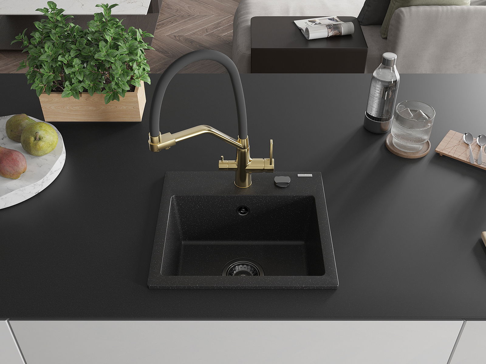 Mexen Milo gránit mosogató 1-medencés Duo konyhai csapteleppel, fekete/ezüst metál - 6505-73-671701-57-B