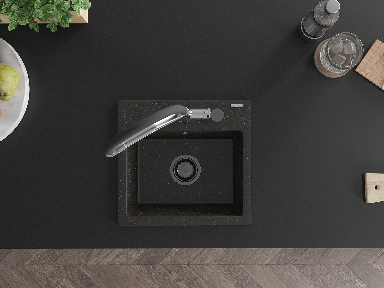 A mosogató magas minőségű gránitból készült. Elegáns, de mindenekelőtt praktikus kiegészítője minden konyhának, függetlenül annak stílusától. A gránit magas minősége és tartóssága hosszú távú használatot biztosít.