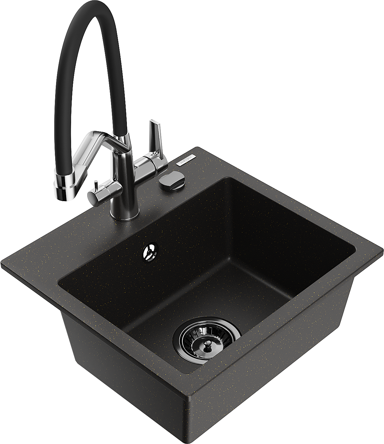 Mexen Milo 1-medencés gránit mosogató konyhai csapteleppel Duo, fekete/arany metál - 6505-75-671701-07-B