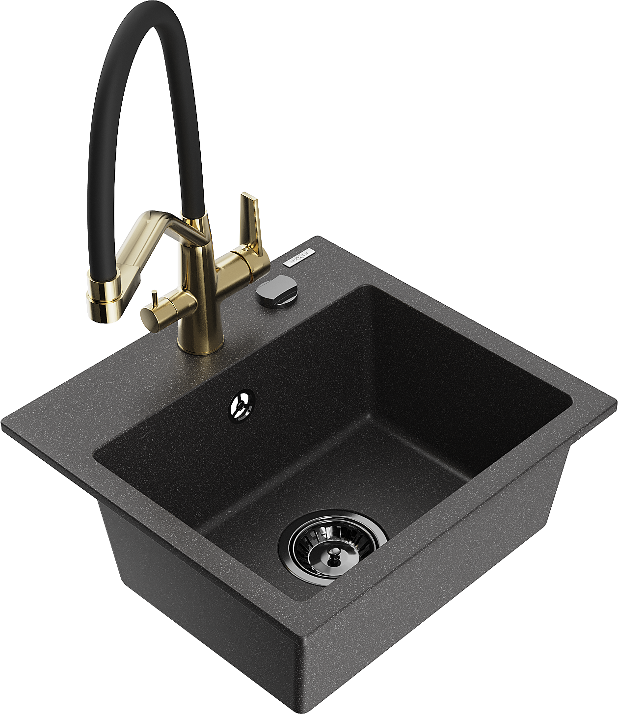A mosogató magas minőségű gránitból készült. Elegáns, de mindenekelőtt praktikus kiegészítője minden konyhának, függetlenül annak stílusától. A gránit magas minősége és tartóssága hosszú távú használatot biztosít.