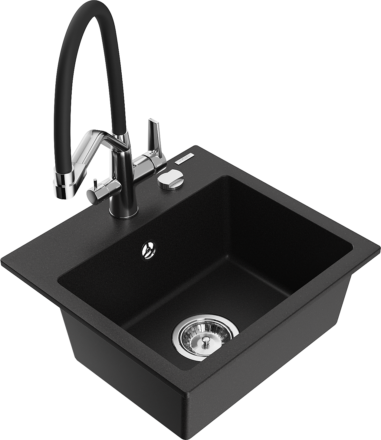 Mexen Milo egymedencés gránit mosogató konyhai csapteleppel Duo, fekete - 6505-77-671701-07