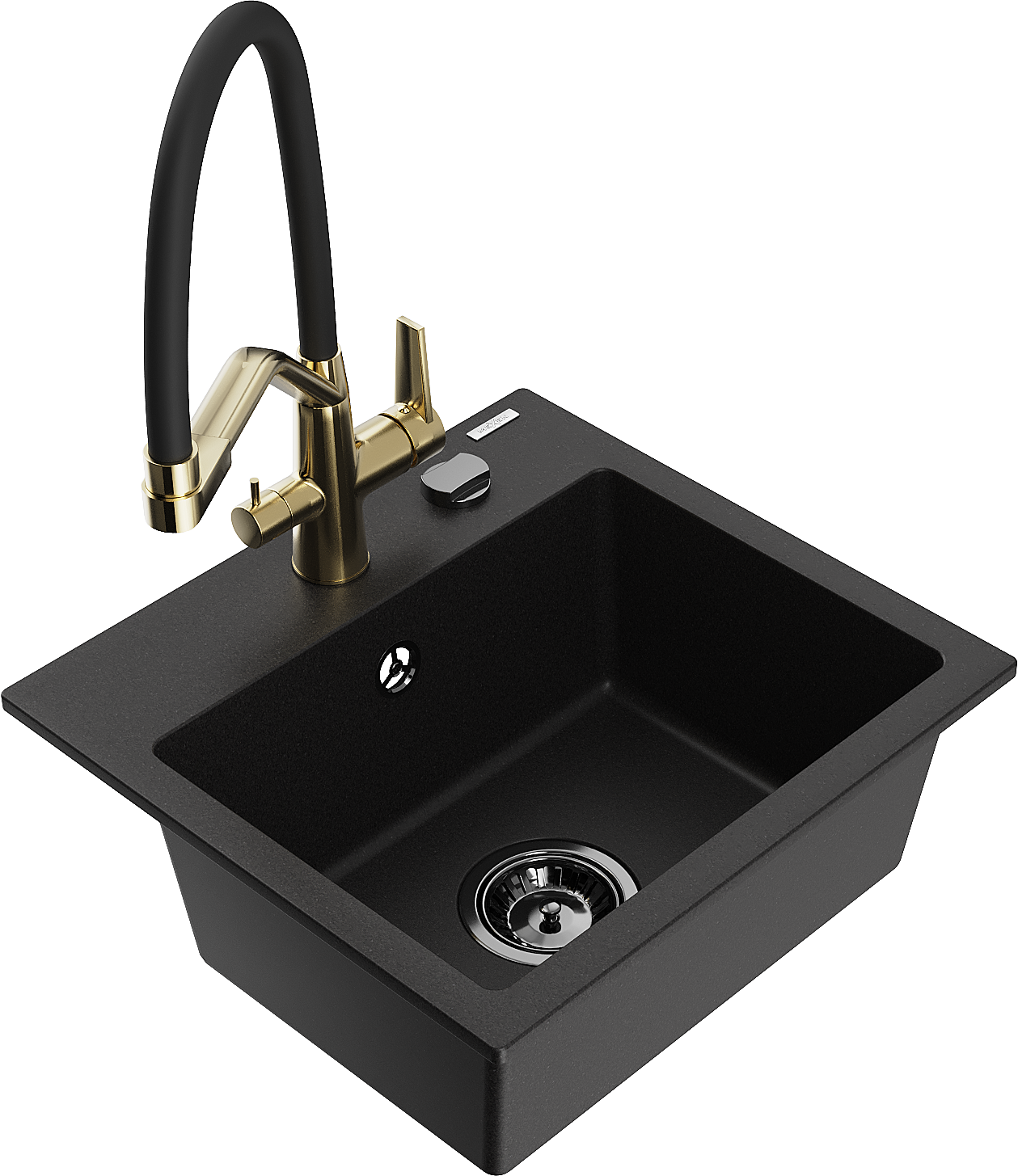 Mexen Milo 1-medencés gránit mosogató Duo konyhai csapteleppel, fekete - 6505-77-671701-57-B