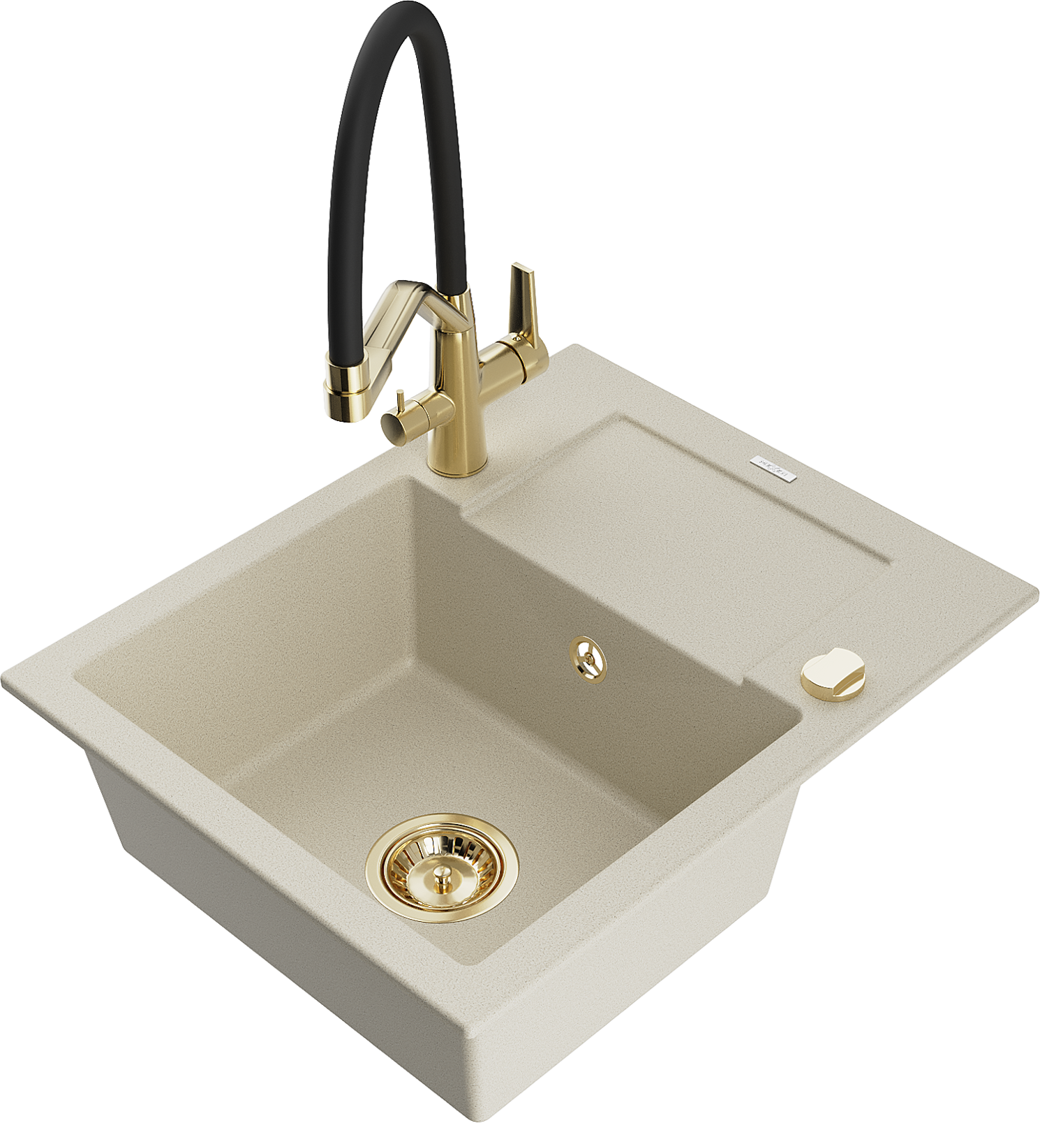 Mexen Enzo egymedencés gránit mosogató lefolyóval és Duo konyhai csappal, bézs - 6506-69-671701-57-G