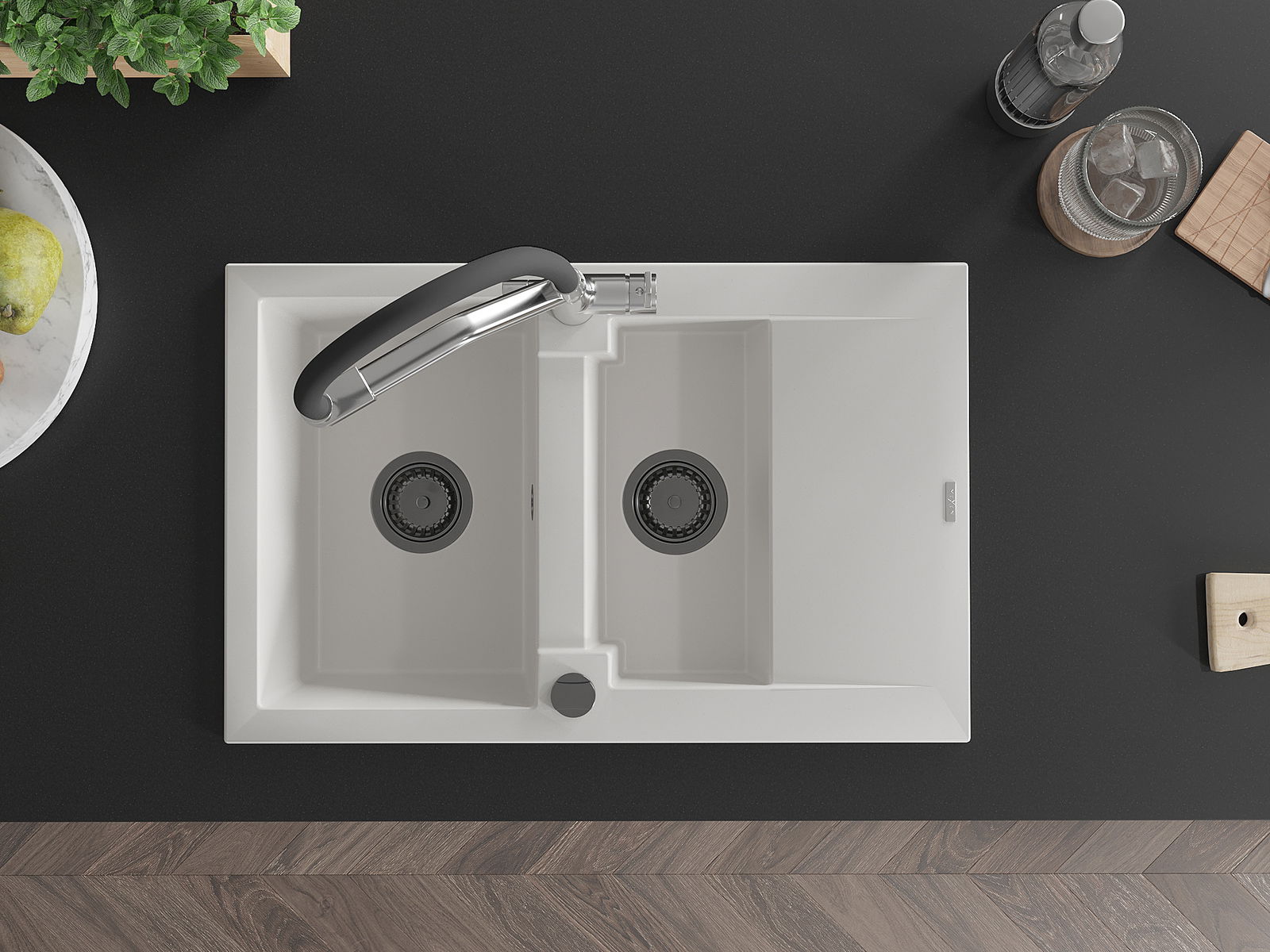 A mosogató felülete ellenáll a foltoknak és a elszíneződésnek, amelynek köszönhetően könnyű megtisztítani és hosszú ideig megtartja színét. Esztétikai és gyakorlatilag kiegészítve minden konyhát.