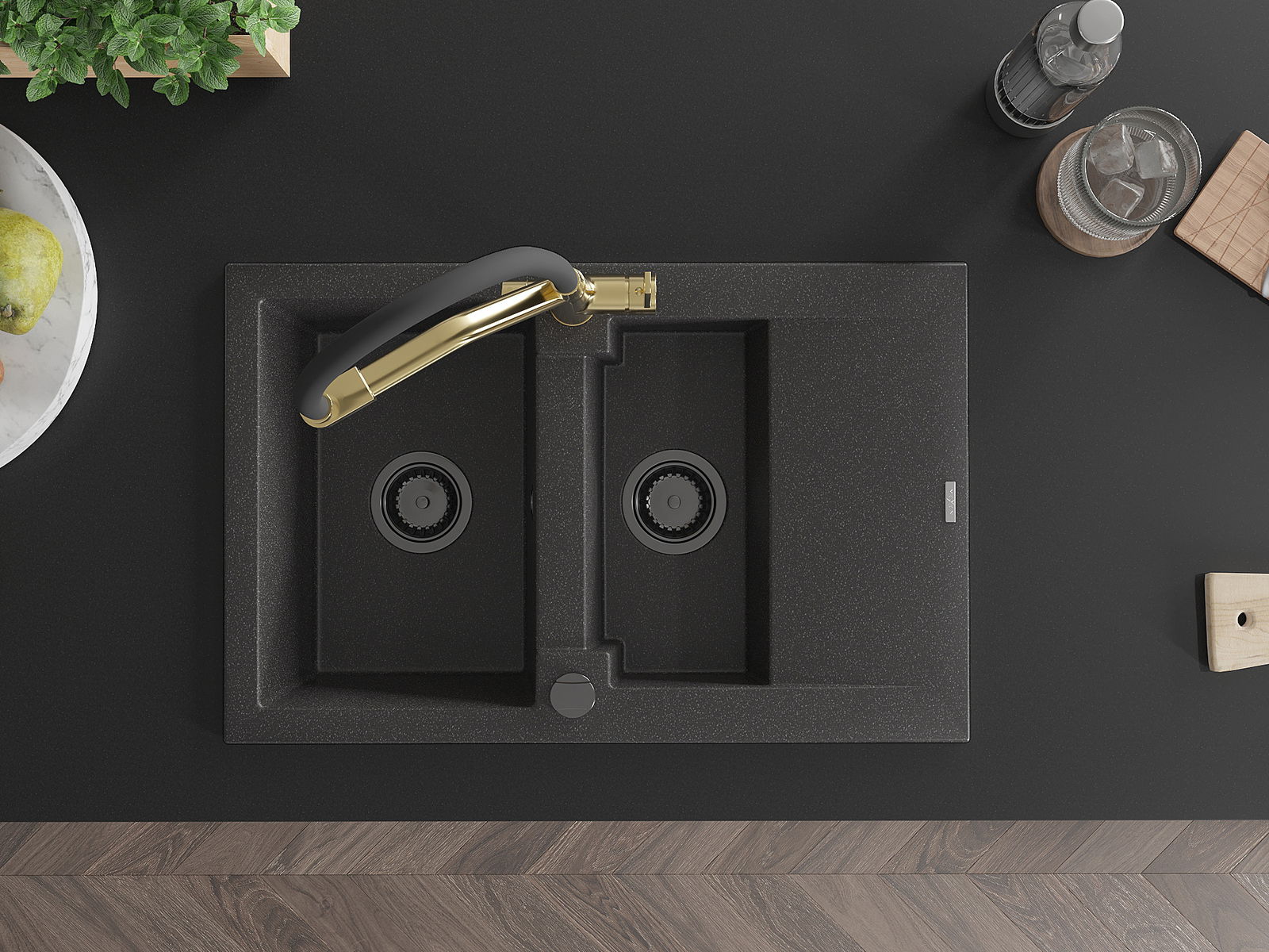 Mexen Gaspar 1,5 medencés gránit mosogató csepegtetővel és Duo konyhai csapteleppel, fekete pettyes - 6507-76-671701-57-B
