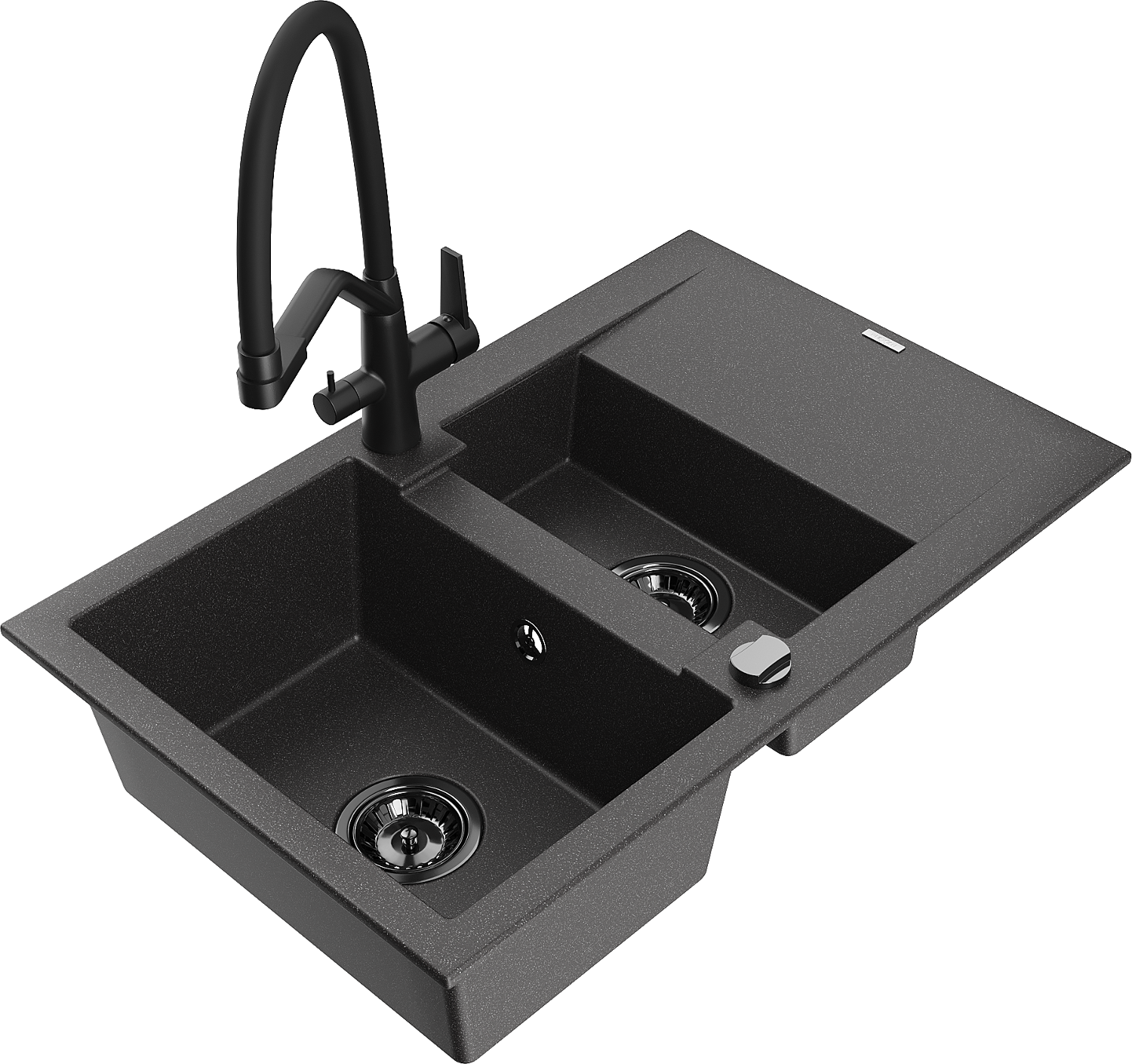 Mexen Gaspar 1,5 rekeszes, csepegtetős gránit mosogató Duo konyhai csapteleppel, fekete pöttyös - 6507-76-671701-70-B