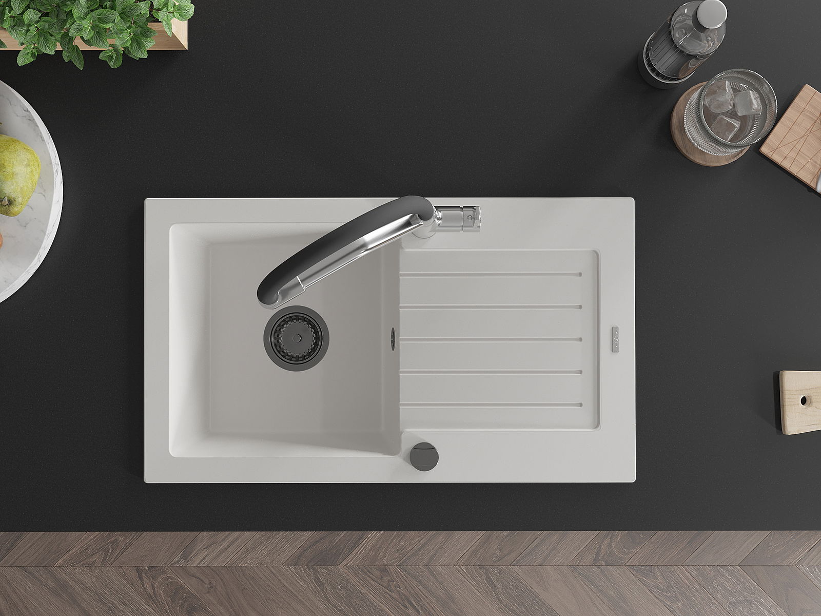 Mexen Pablo 1-medencés gránit mosogató lefolyóval és Duo konyhai csapteleppel, fehér - 6510-20-671701-07-B